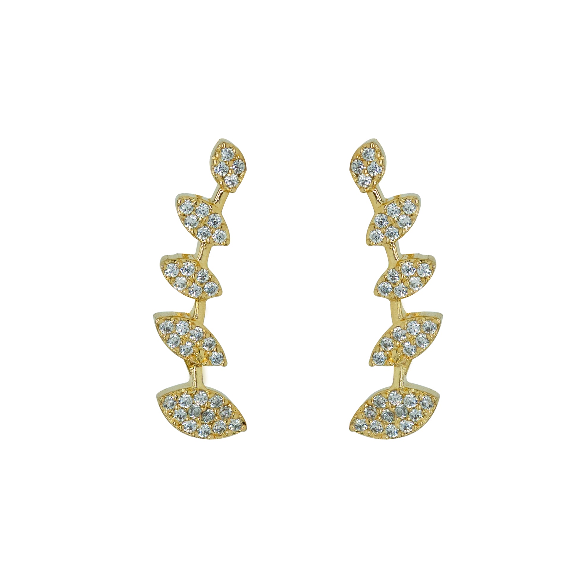 Elevate your look with this CZ Leaf Drop Ear Cuff, also known as a Bluetooth earring, designed for effortless elegance. Handcrafted in 925 sterling silver and finished with luxurious gold plating, this piece features a beautiful leaf-inspired design studded with sparkling cubic zirconia stones. The flowing curve hugs your ear naturally, adding a graceful shimmer to your outfit.