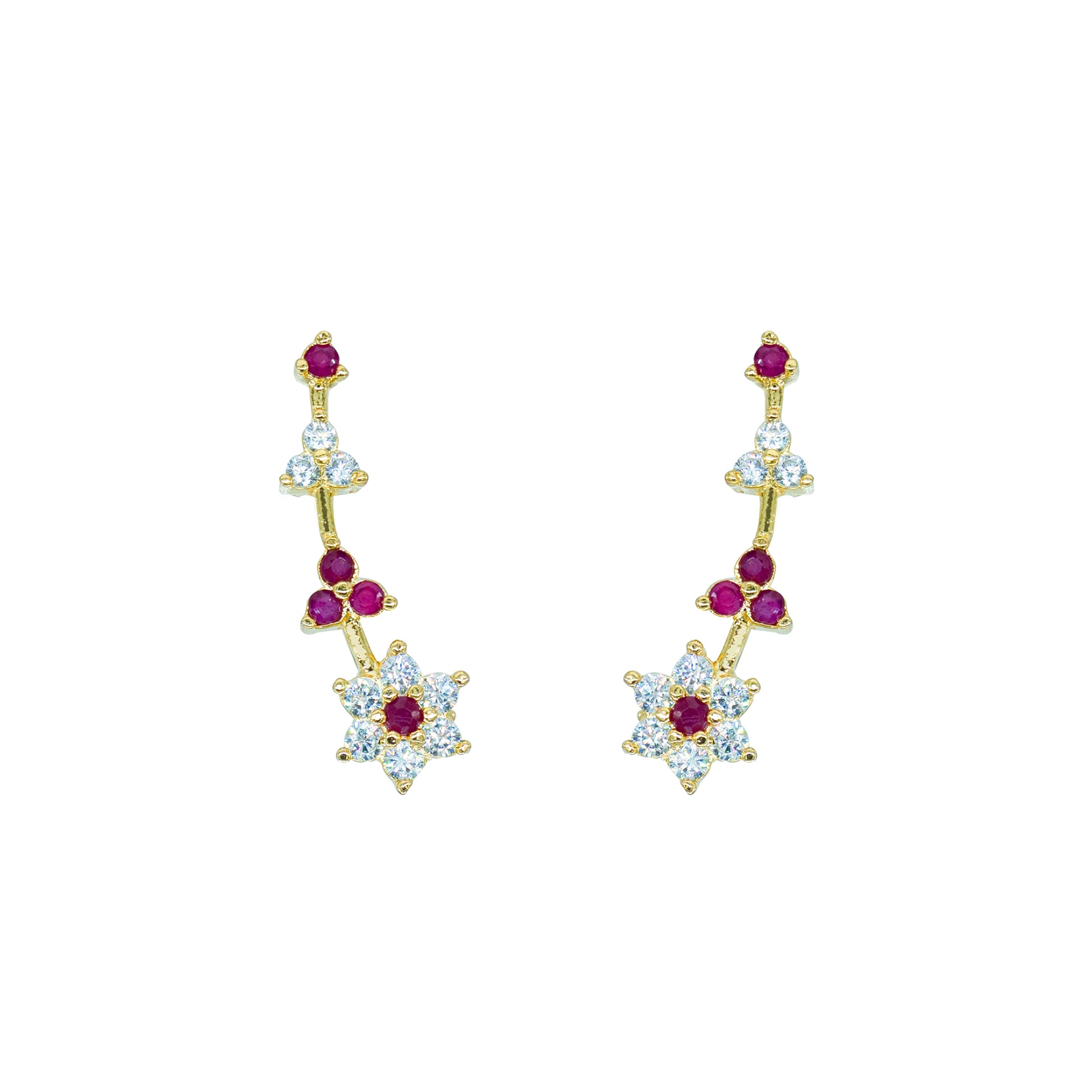 Dazzling CZ ruby and white star cluster ear cuff, crafted in hallmarked 925 sterling silver with luxurious gold plating. A trendy Bluetooth-style earring that adds sparkle and sophistication