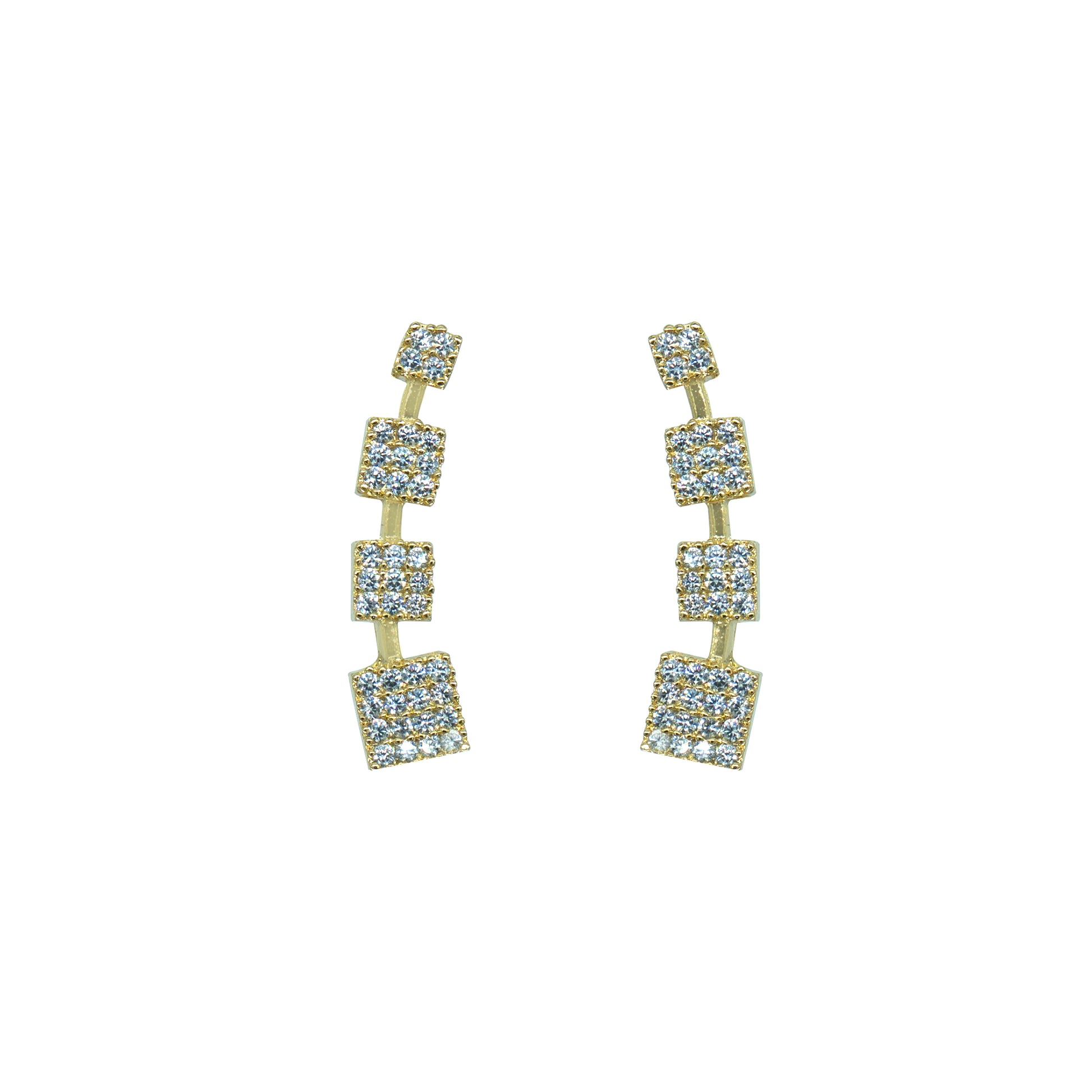Stylish CZ square cluster Bluetooth earring, crafted in hallmarked 925 sterling silver with premium gold plating. The geometric sparkle adds a chic, modern edge — no piercing required, anti-tarnish finish, perfect for daily elegance.