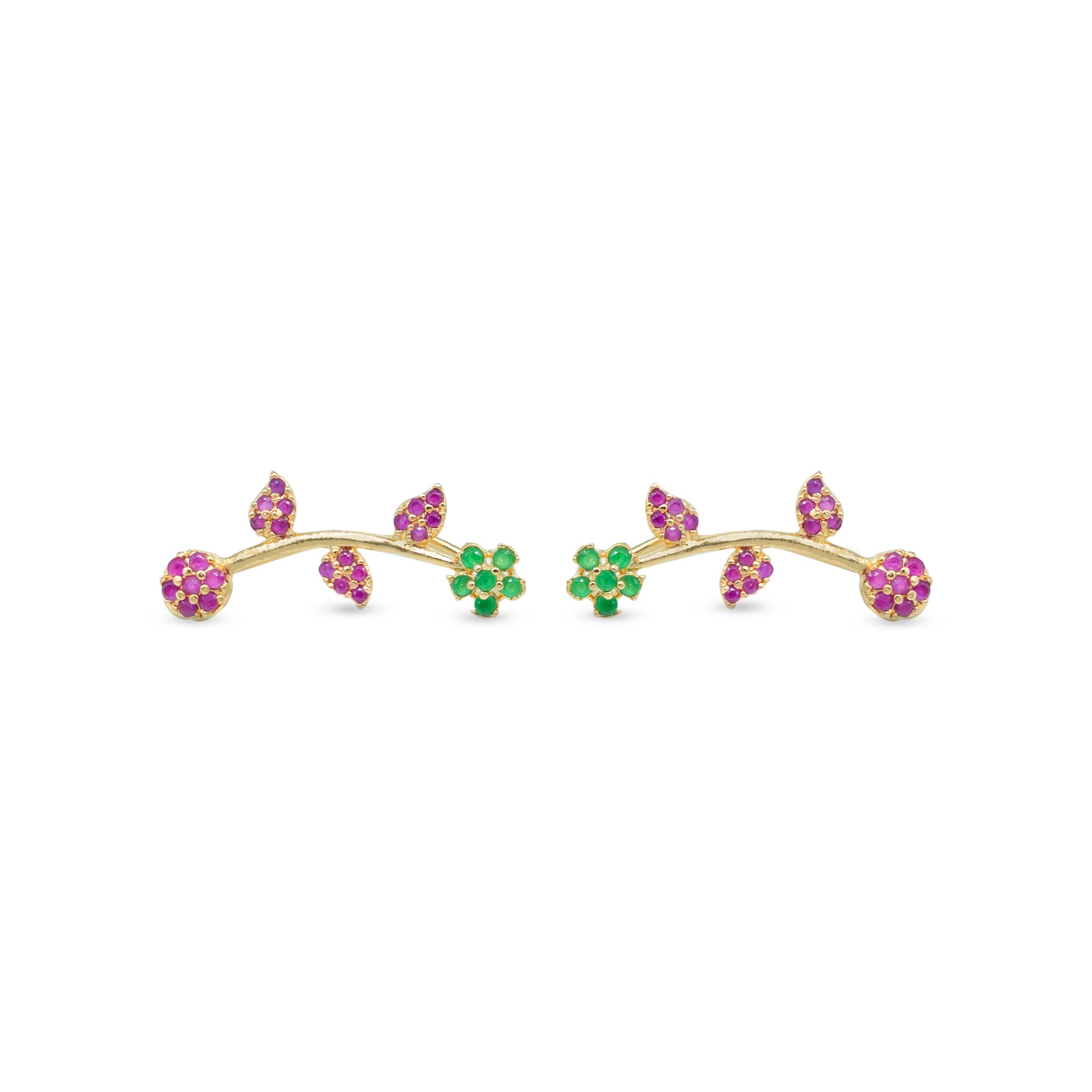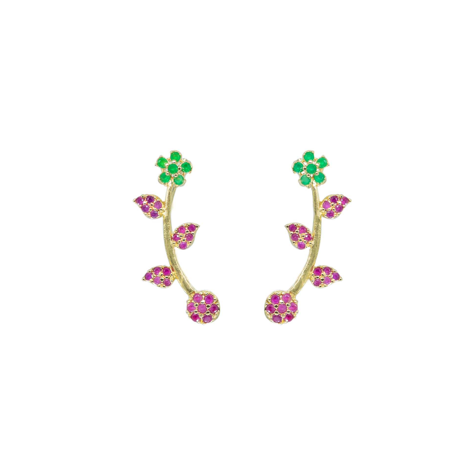 Charming pink and green floral vine ear cuff, also known as a Bluetooth earring, handcrafted in gold plated 925 sterling silver. No piercing required — elegant, anti-tarnish, and perfect for adding a pop of colour to your everyday look.