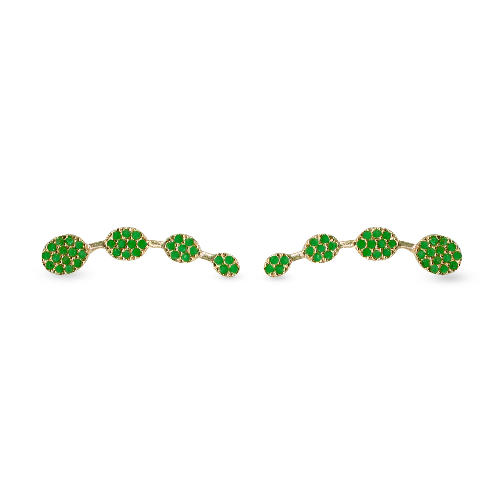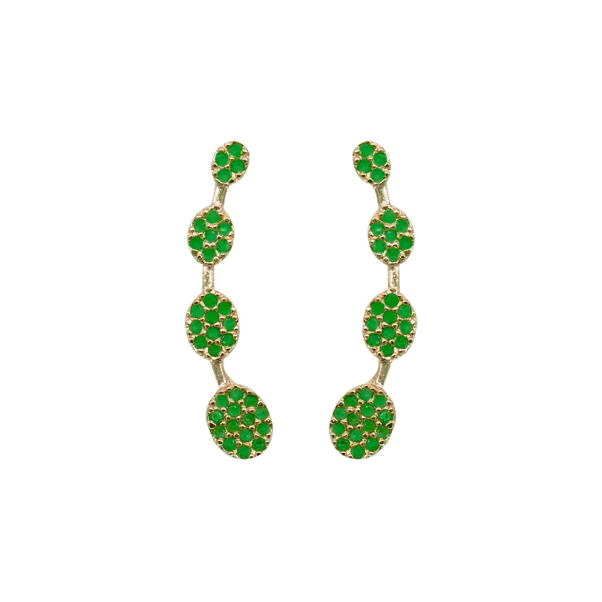 The unique circular design is set with emerald-green cubic zirconia stones, creating a shimmering effect that enhances both traditional and modern looks.