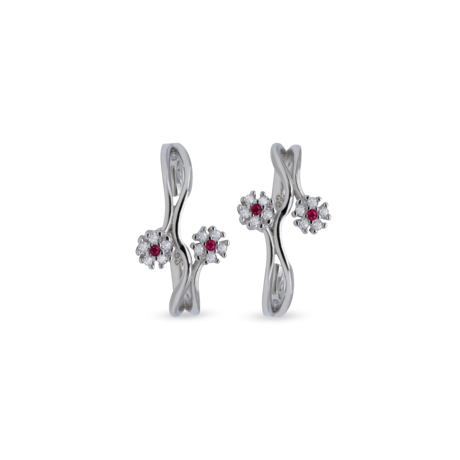 Add a hint of timeless elegance to your feet with this Floral Ruby Bloom Toe Ring, delicately crafted in 925 Sterling Silver and finished with a rhodium polish for lasting shine. The charming dual-flower design features sparkling white Cubic Zirconia petals with a ruby-red center stone, creating a perfect fusion of grace and glamour.