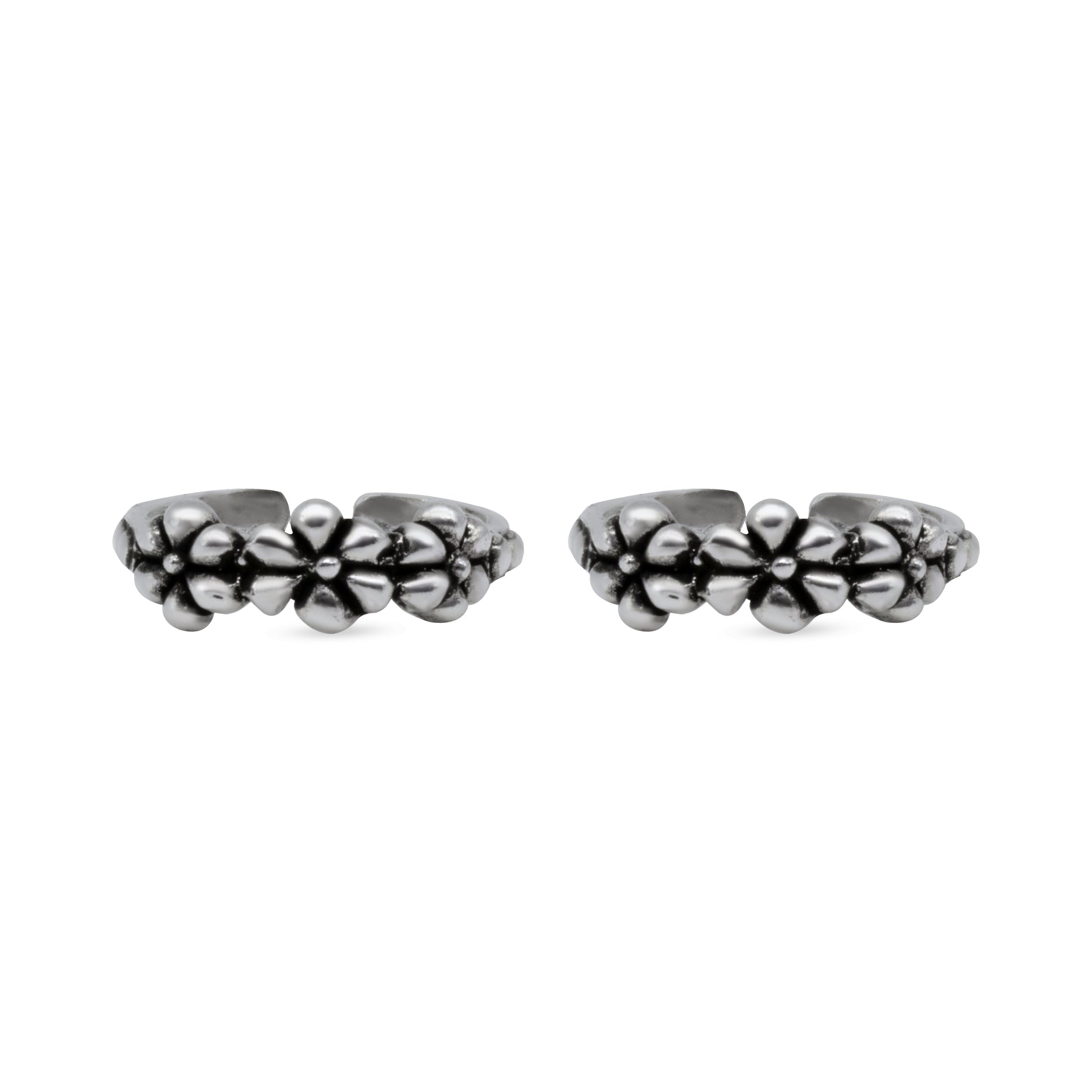 Bring timeless tradition to your style with this Oxidized Floral Toe Ring, handcrafted from pure 925 Sterling Silver with a rich antique oxidized finish. The intricate floral motifs exude vintage charm and add an elegant ethnic touch to your feet, making it perfect for festive wear or everyday elegance.