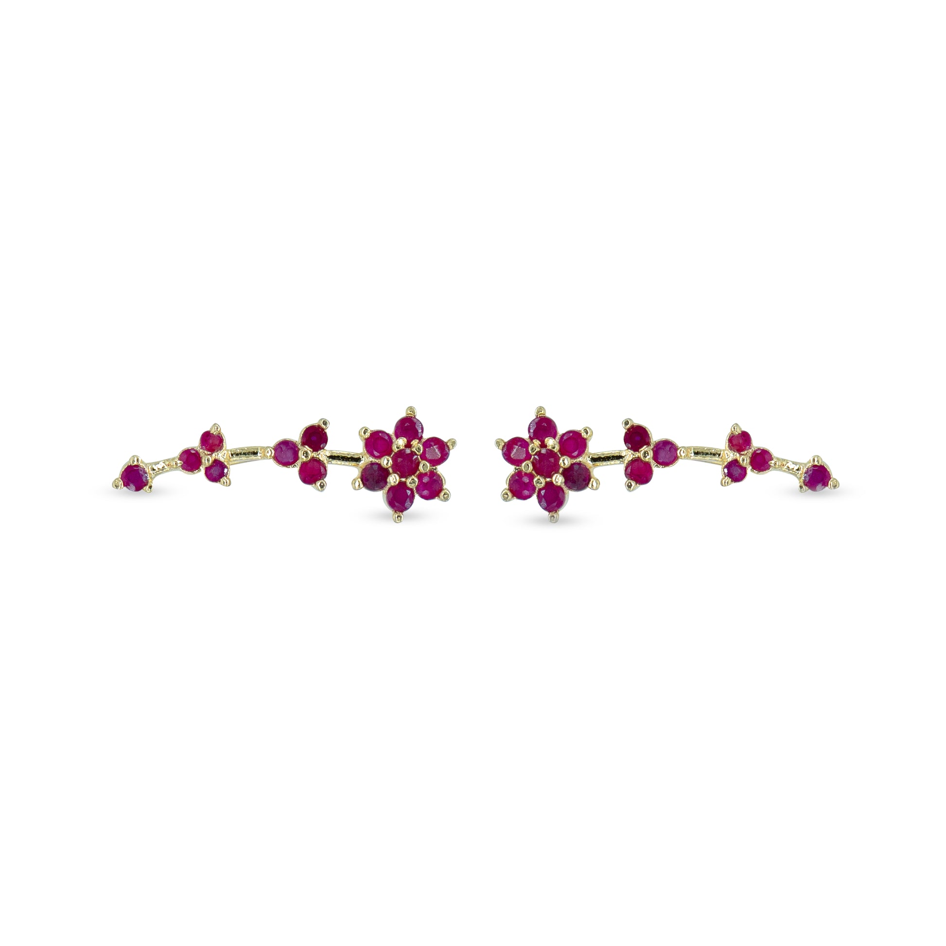 Charming 925 Sterling Silver ear cuff featuring floral motifs with brilliant pink CZ stones. Gold plated and non-pierced, this Bluetooth-style earring adds a feminine and trendy sparkle to your everyday look.