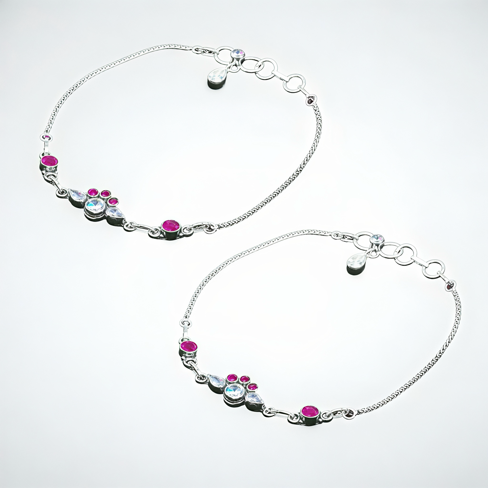 925 Sterling Silver Pink & White CZ Stone Anklet Pair for Women | 925 Sterling Silver Payal