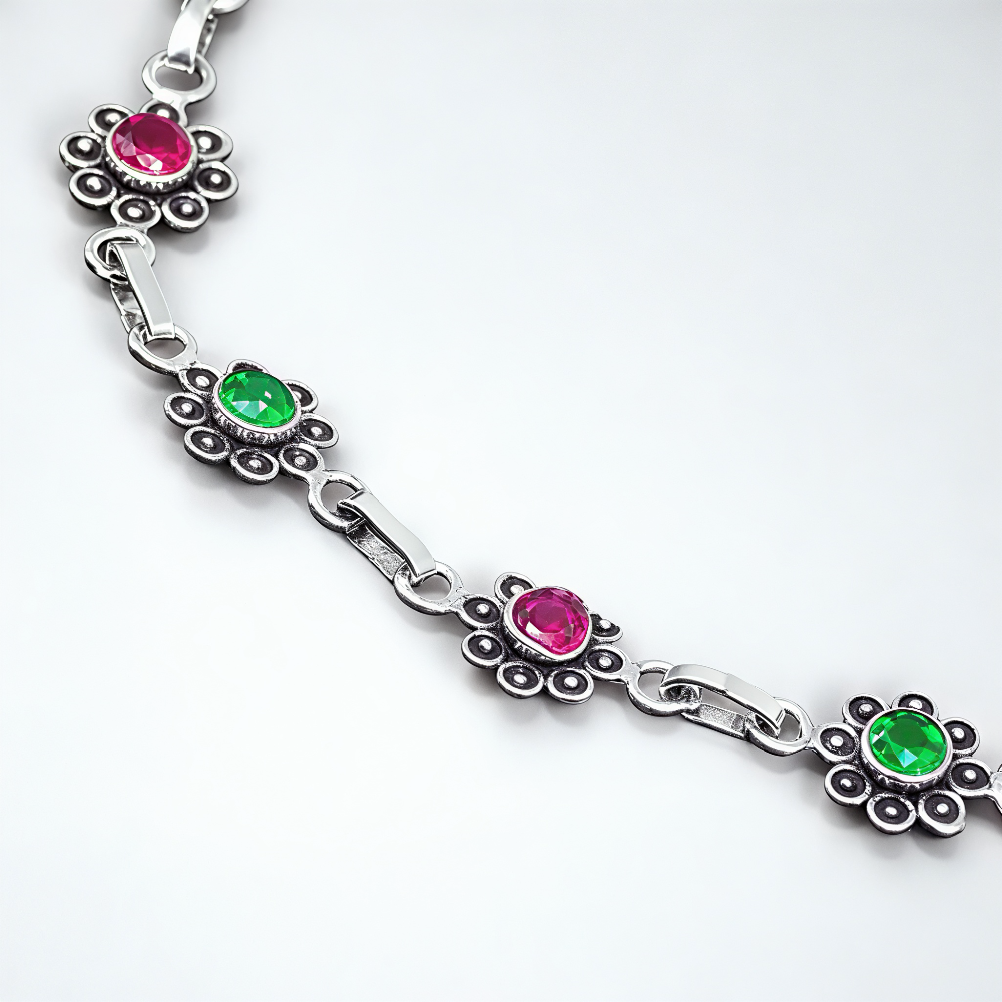 Celebrate beauty and tradition with this 925 Sterling Silver Ruby & Emerald Floral Anklet...