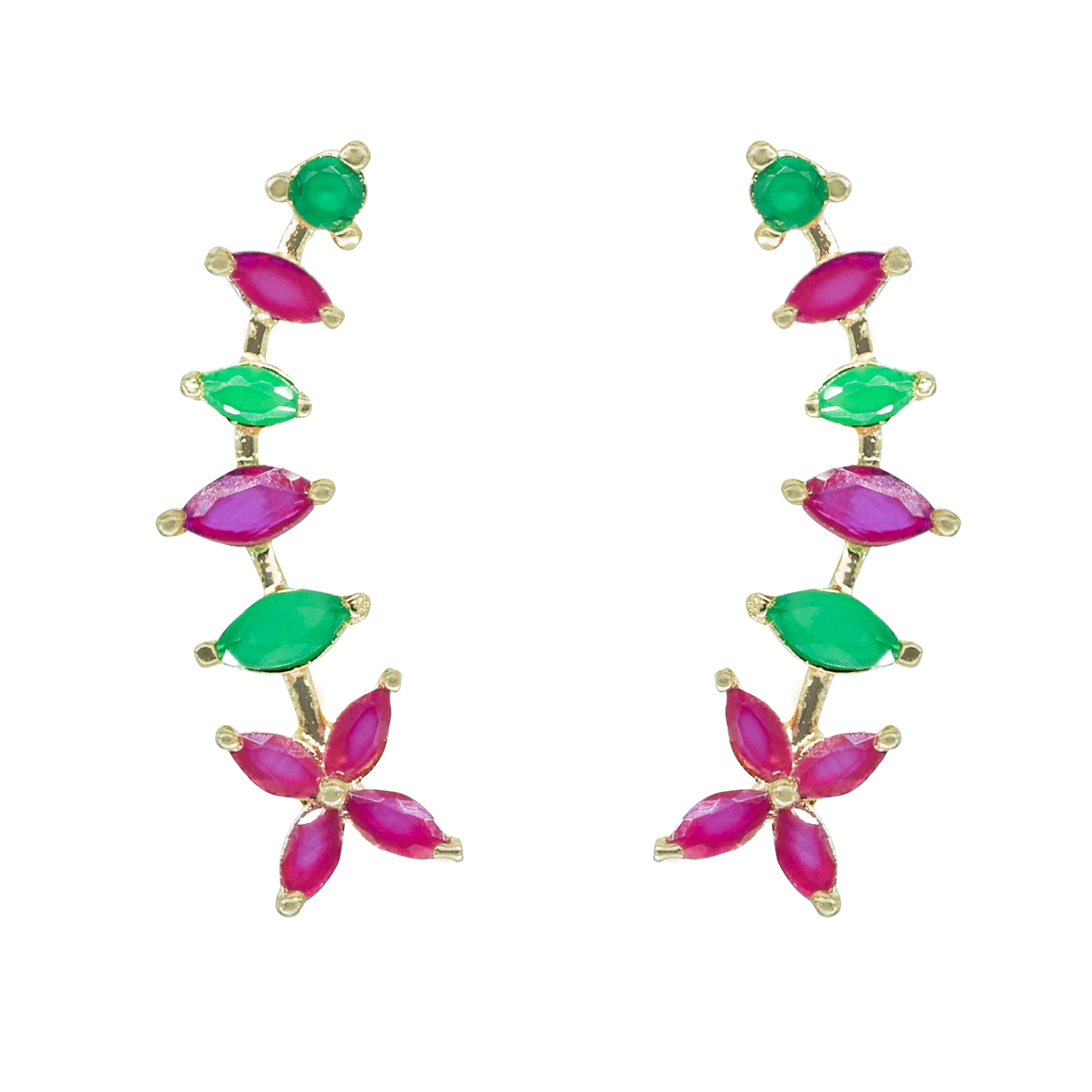 Bring color and elegance to your ear stack with TAVSHAN’s 925 Sterling Silver Gold-Plated Ear Cuff, beautifully set with green and pink CZ stones.