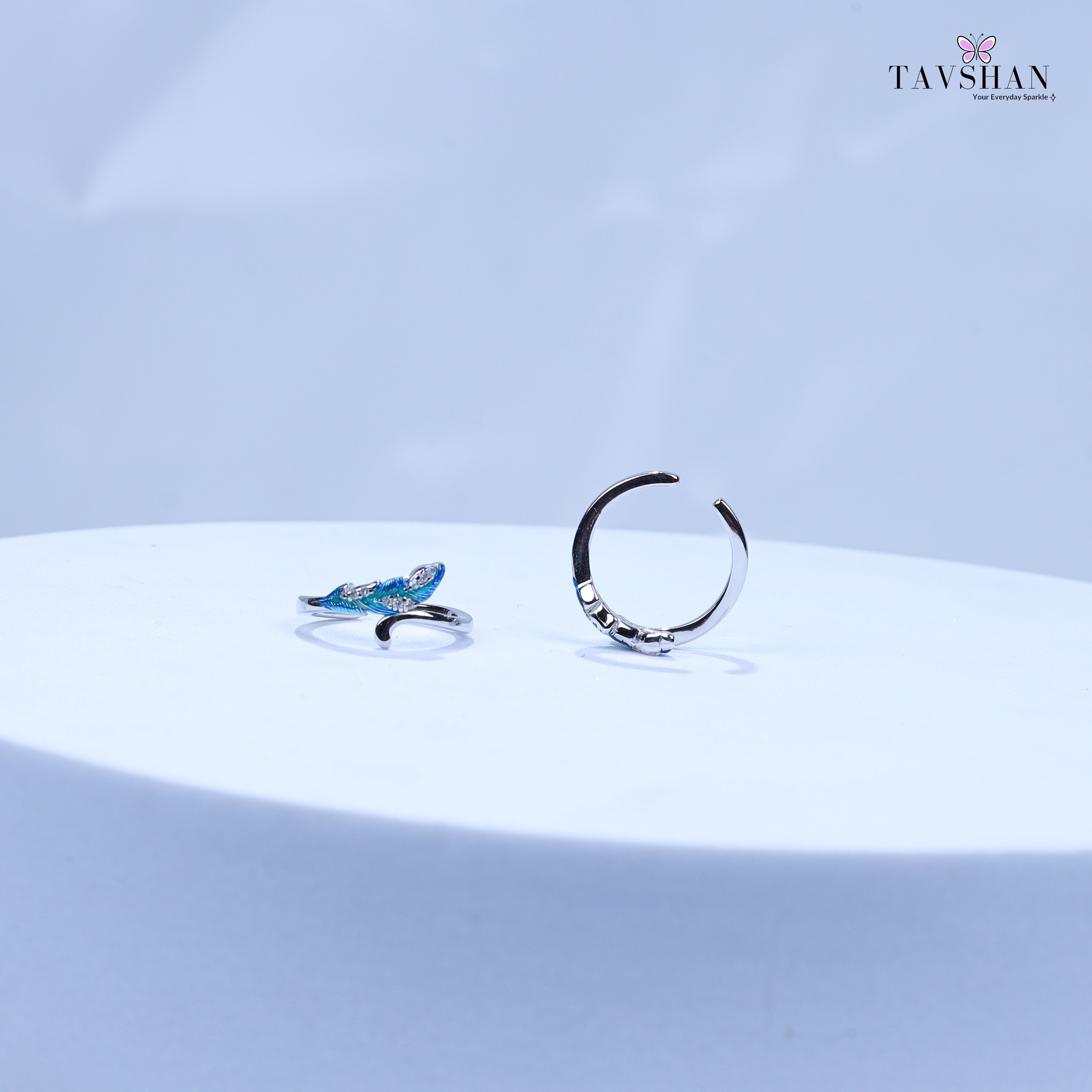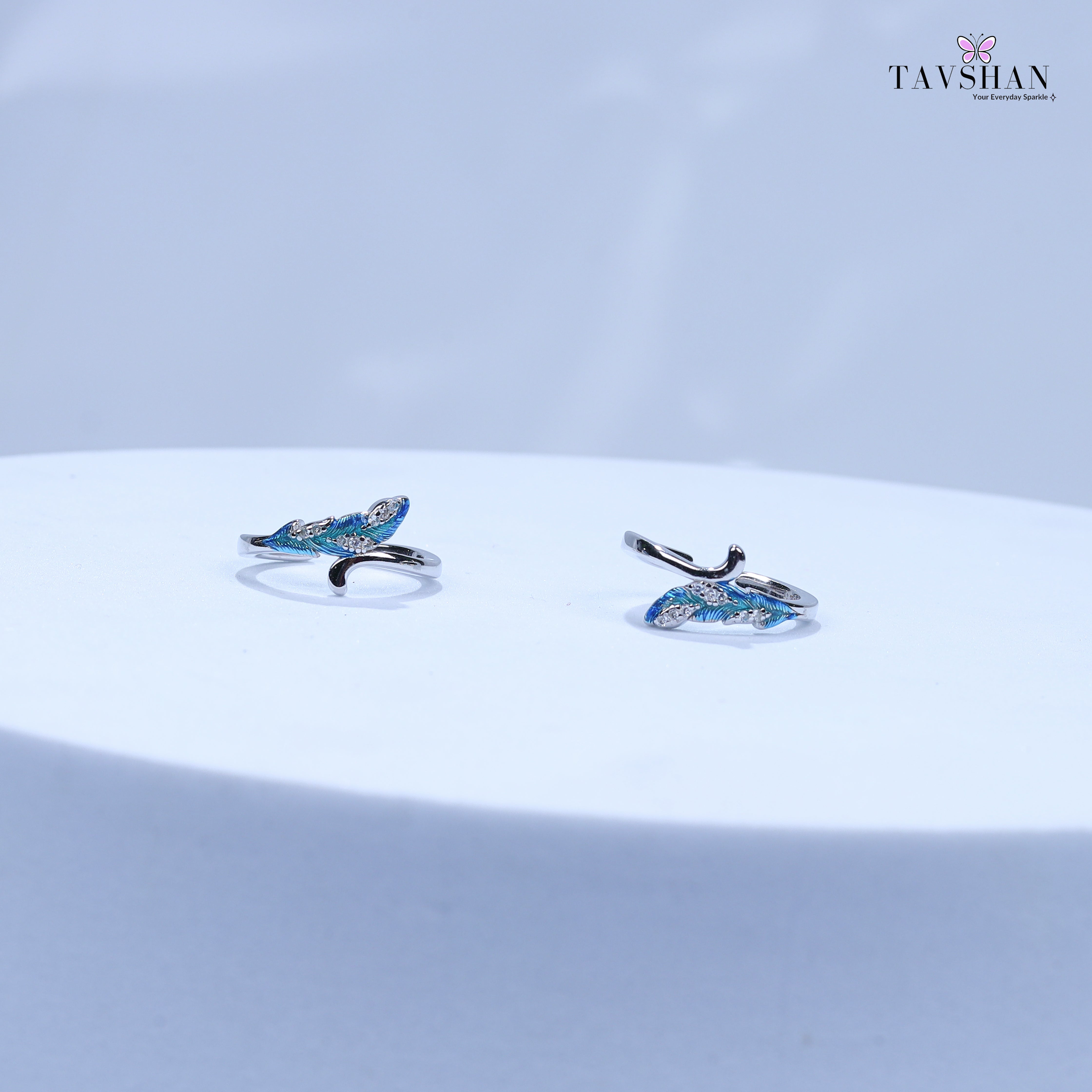 Add a touch of elegance and nature-inspired charm with this 925 Sterling Silver Adjustable Toe Ring. Designed in a graceful feather/leaf shape, it features blue enamel highlights and sparkling stones that catch the light beautifully. Crafted from premium sterling silver, this toe ring is skin-safe, durable, and adjustable for a comfortable fit.