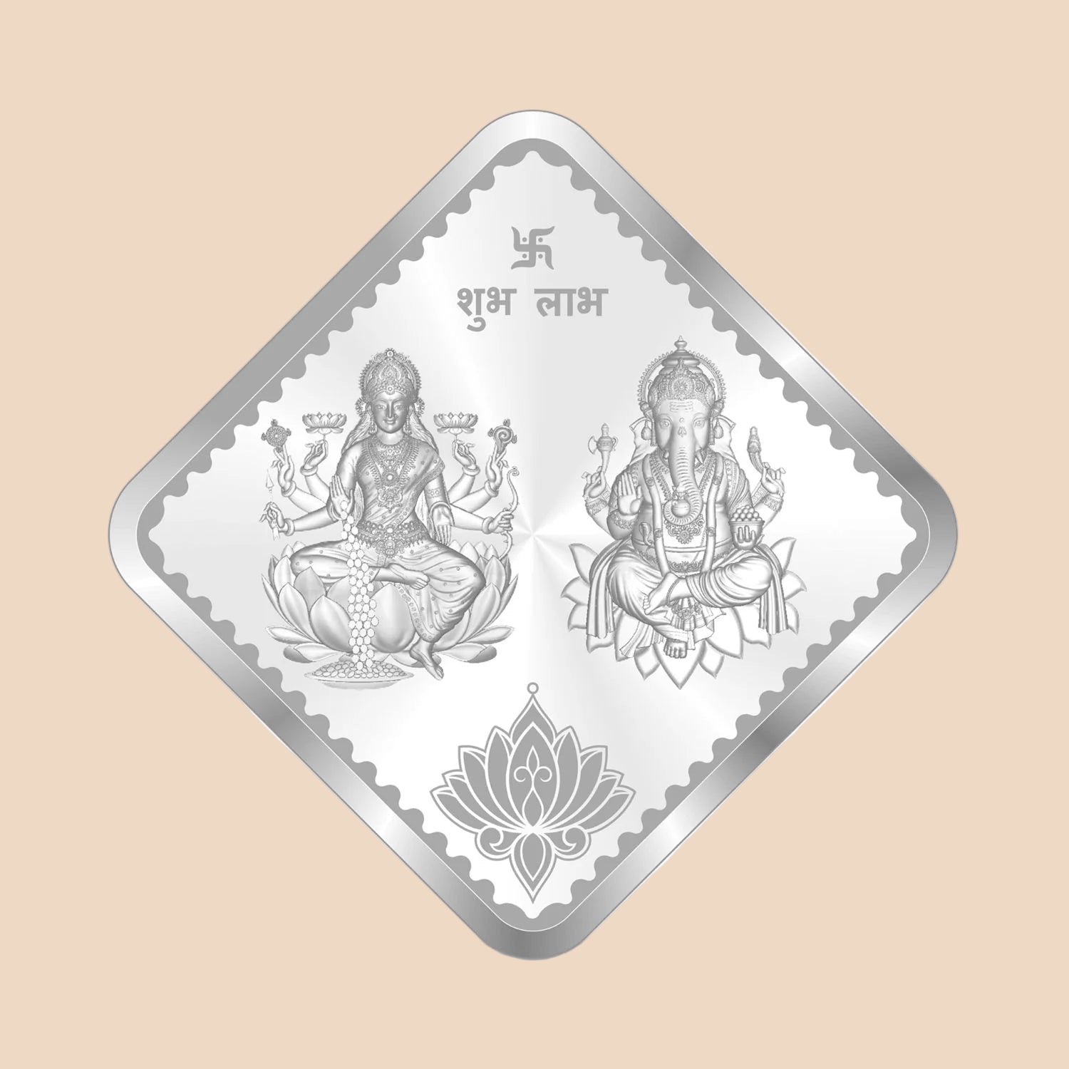 999 Fine Silver Lakshmi Ganesh Coin – Square Shaped Auspicious Coin