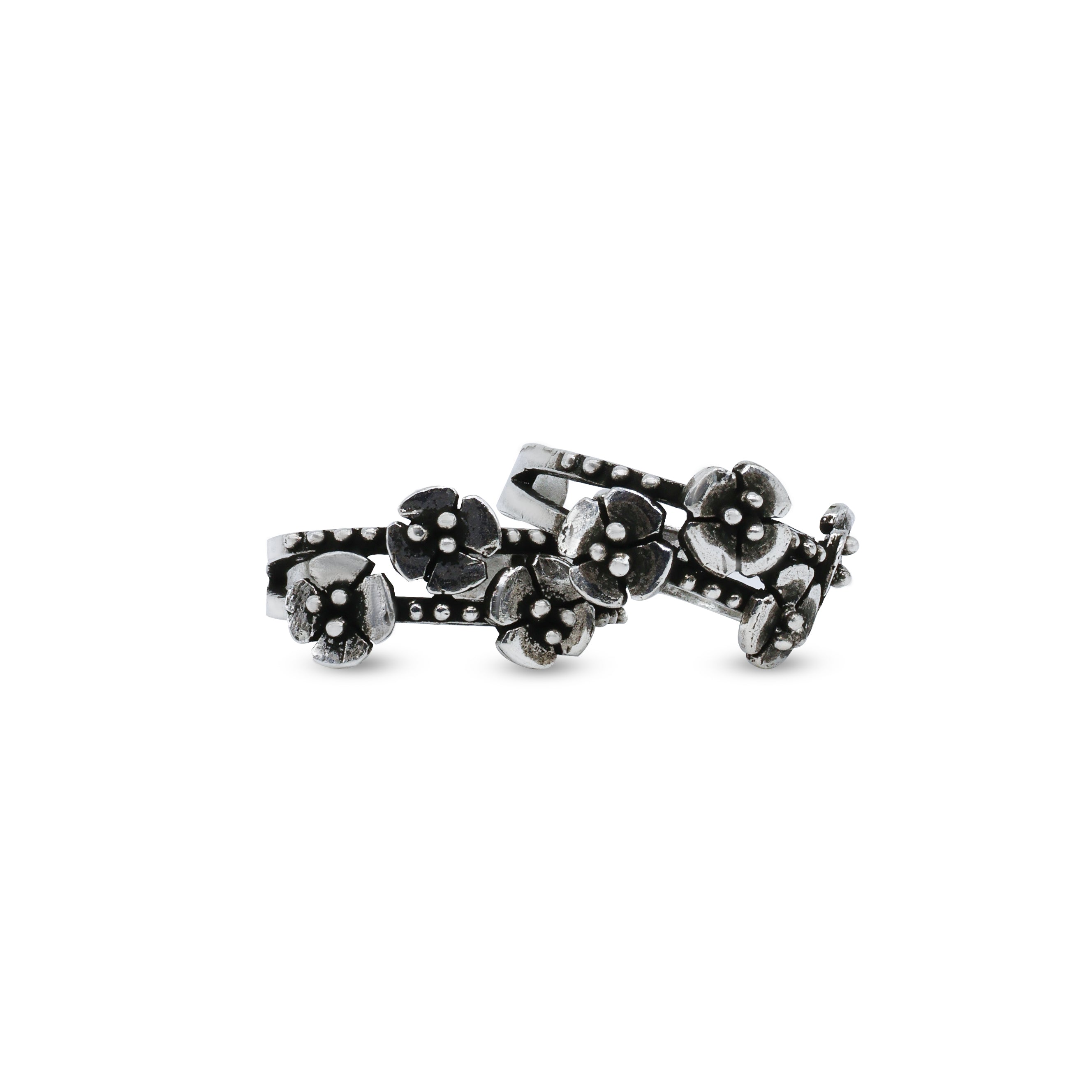 Oxidized Floral Blossom Toe Ring – 925 Sterling Silver Antique Finish