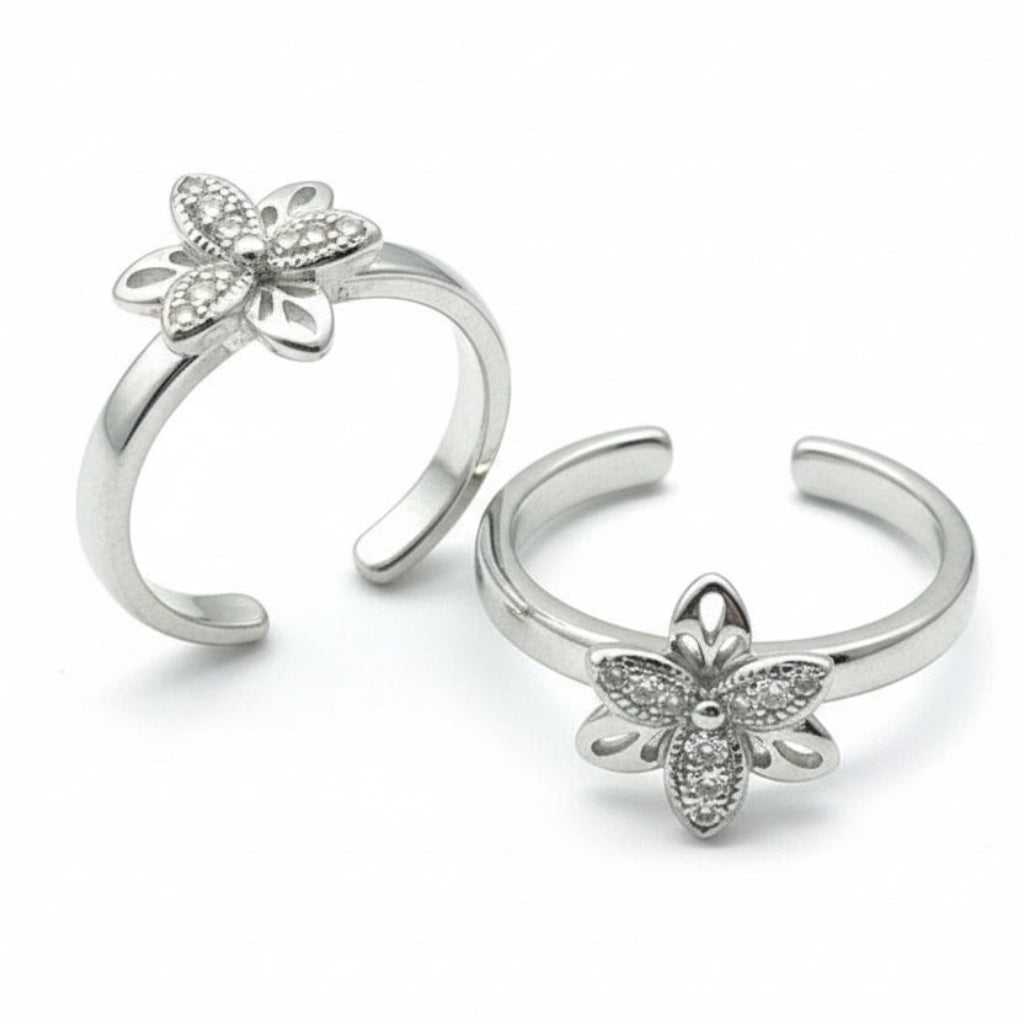 Add subtle sparkle to your everyday style with this 925 Sterling Silver Floral CZ Adjustable Toe Ring, featuring a delicate flower design with shimmering cubic zirconia. Lightweight and comfortable for daily wear.