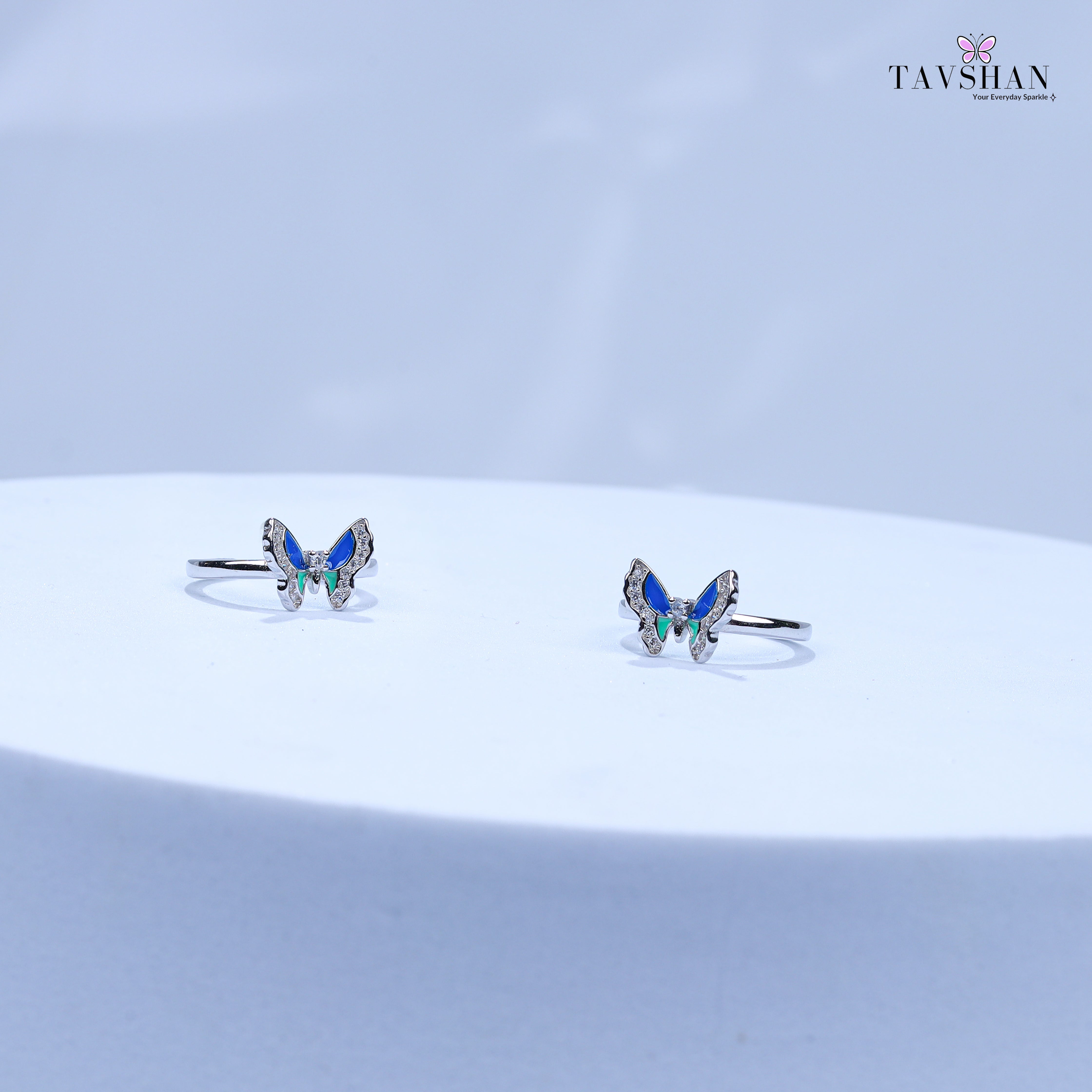 925 Sterling Silver Adjustable Toe Ring – Blue Enamel Butterfly with Sparkling Stone Accents