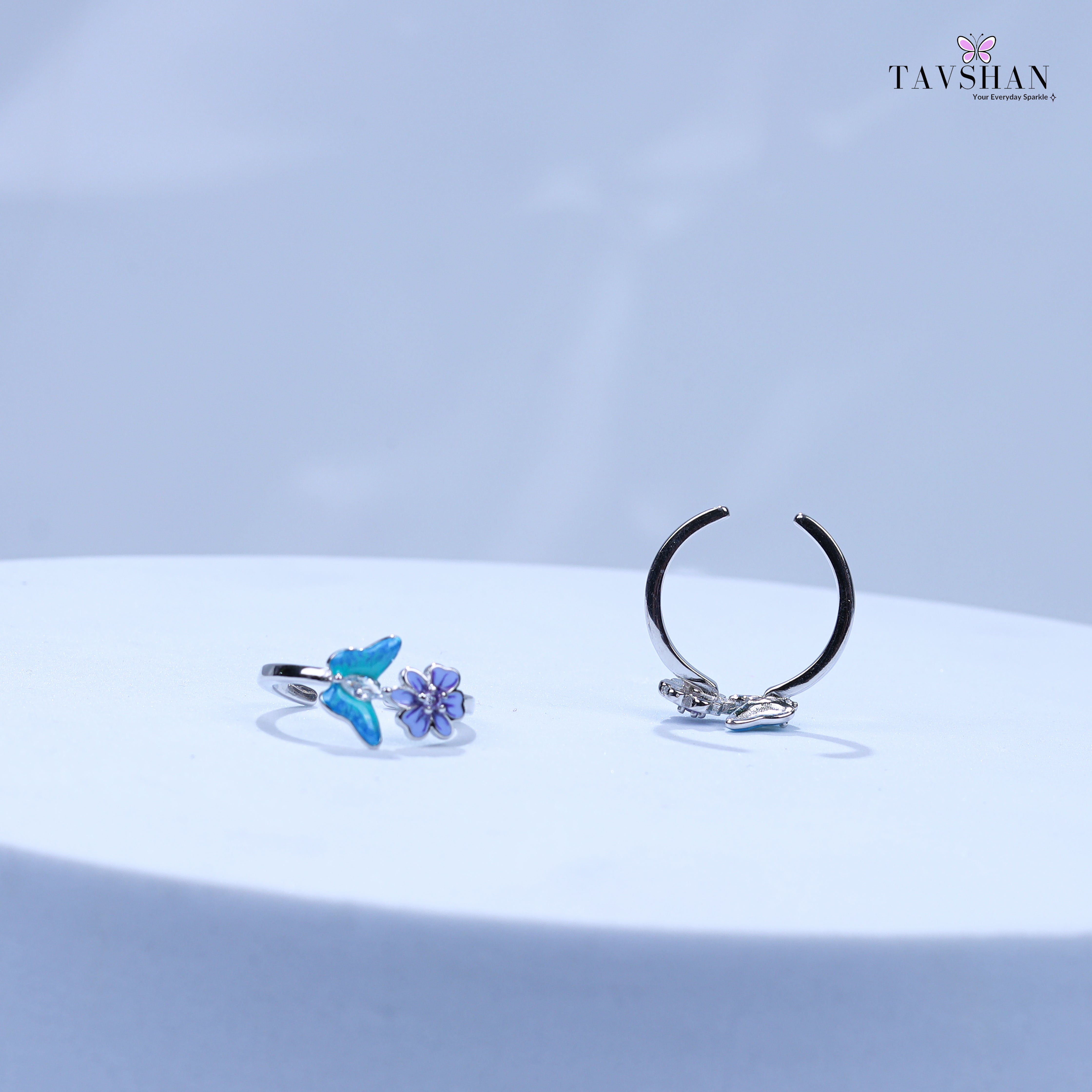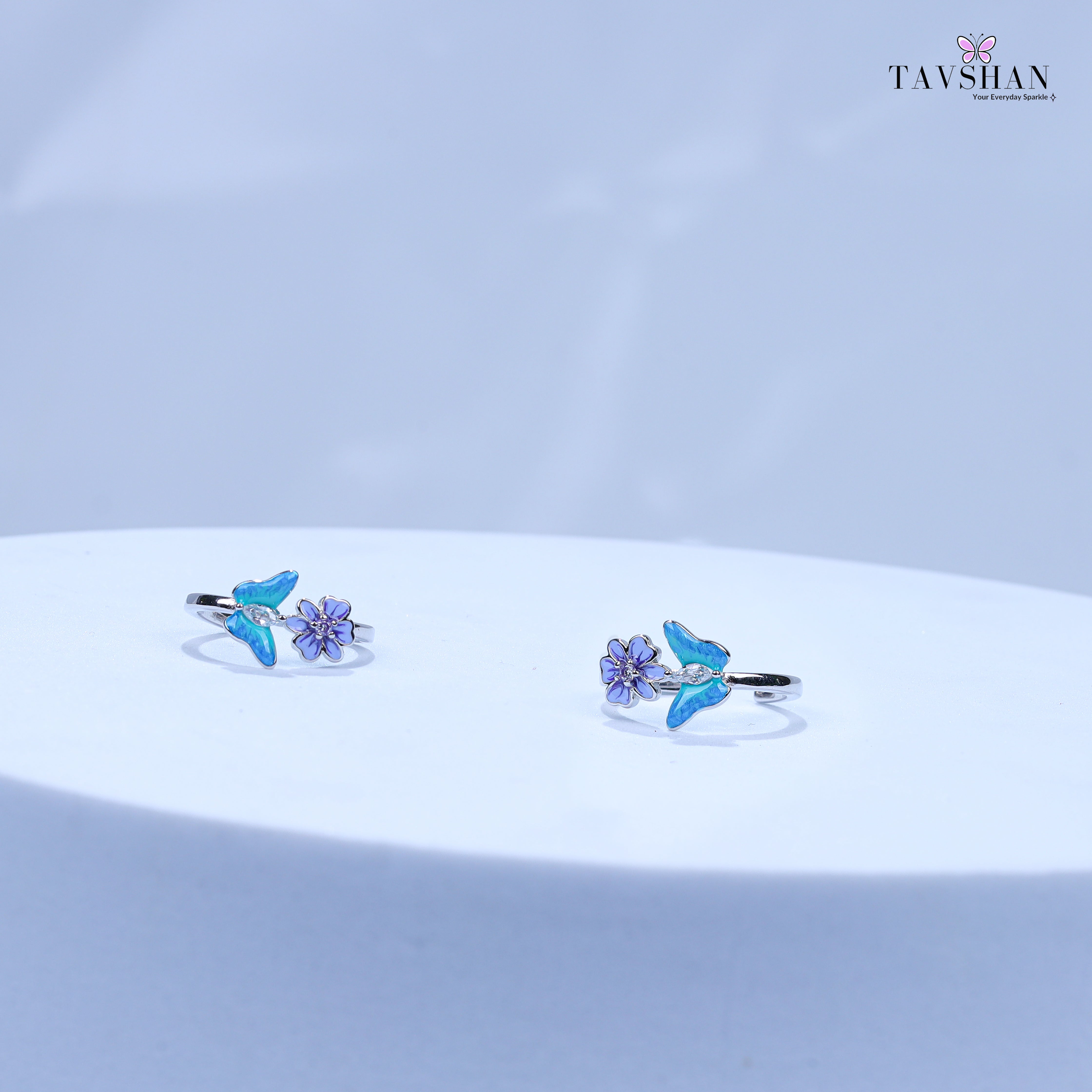 Step into elegance with this 925 Sterling Silver Adjustable Toe Ring, featuring a stunning combination of a purple enamel flower and blue enamel leaves. The delicate design is highlighted by a sparkling central stone, adding just the right amount of shine. Handcrafted with precision, this toe ring is both durable and skin-friendly, making it perfect for daily wear or special occasions.