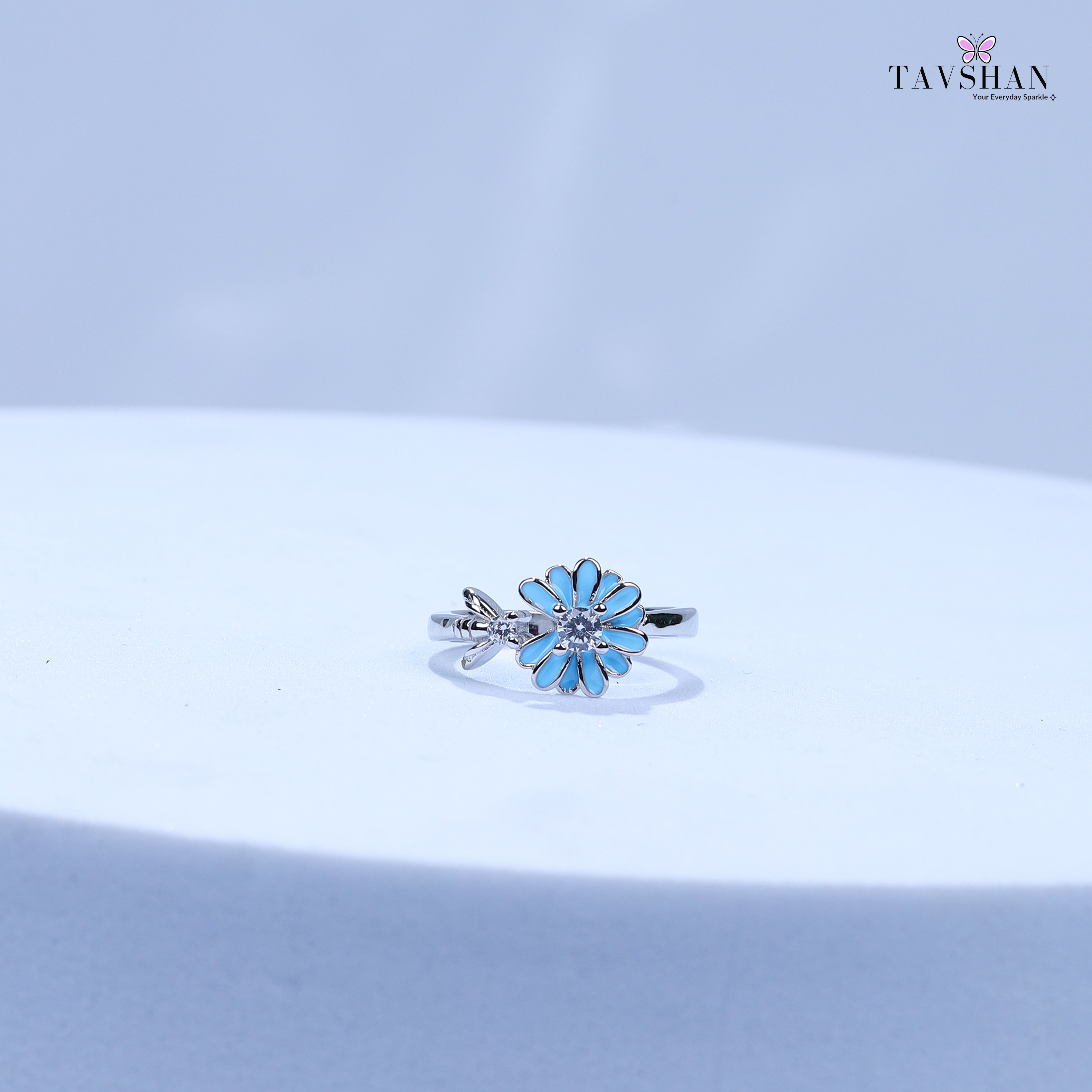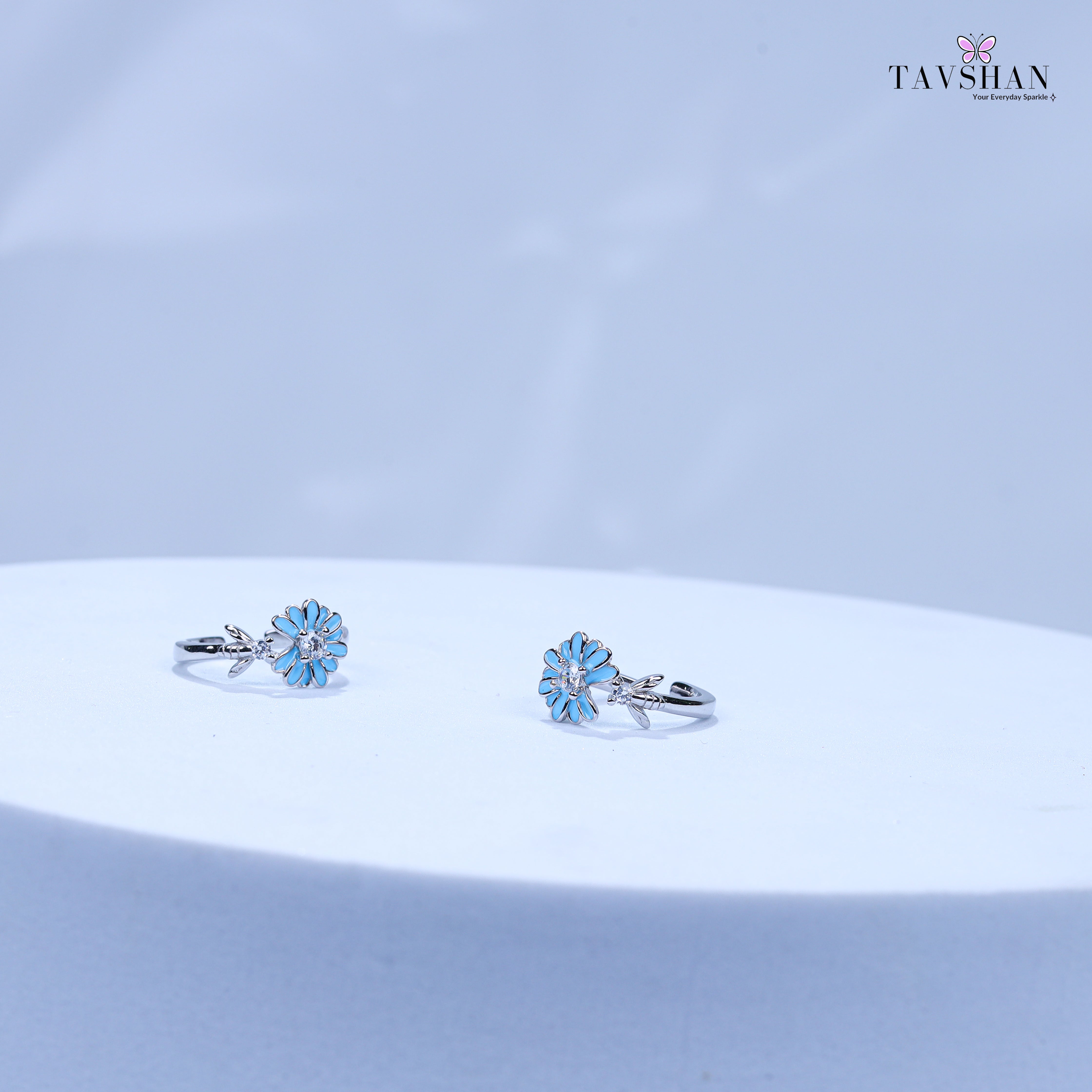 925 Sterling Silver Adjustable Toe Ring – Blue Floral Enamel with Sparkle Stone925 Sterling Silver Adjustable Toe Ring – Blue Floral Enamel with Sparkle Stone925 Sterling Silver Adjustable Toe Ring – Blue Floral Enamel with Sparkle Stone925 Sterling Silver Adjustable Toe Ring – Blue Floral Enamel with Sparkle StoneGreen jewelry box with 'Tavshan' branding on a beige background