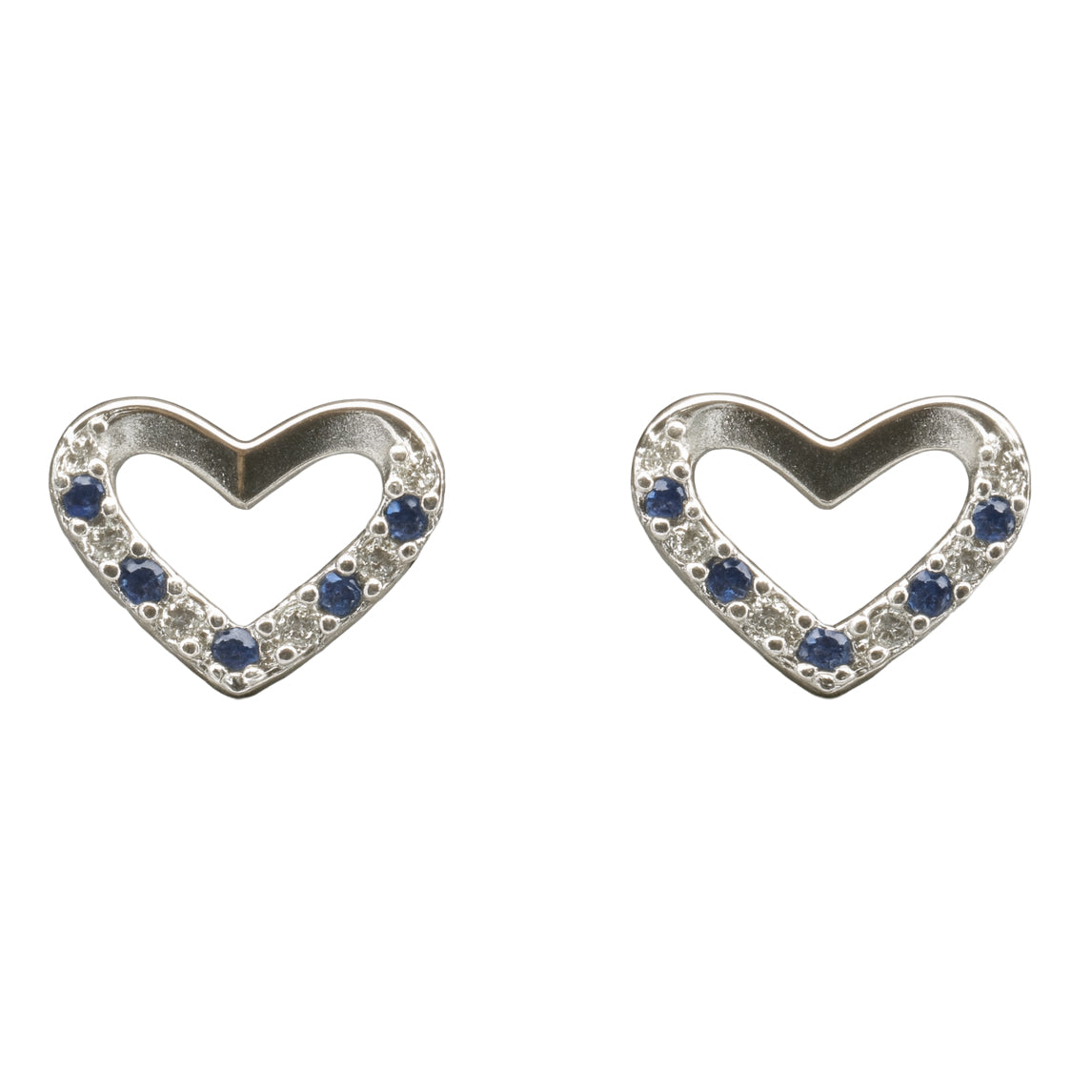 Add a pop of color with these 925 Sterling Silver Blue & White CZ Heart Stud Earrings. Featuring an open-heart silhouette with alternating blue and white CZ stones, these earrings are both playful and chic.
