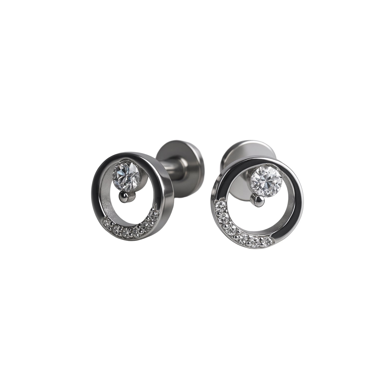 • Design: Contemporary open circle stud with central solitaire zircon and pavé accents