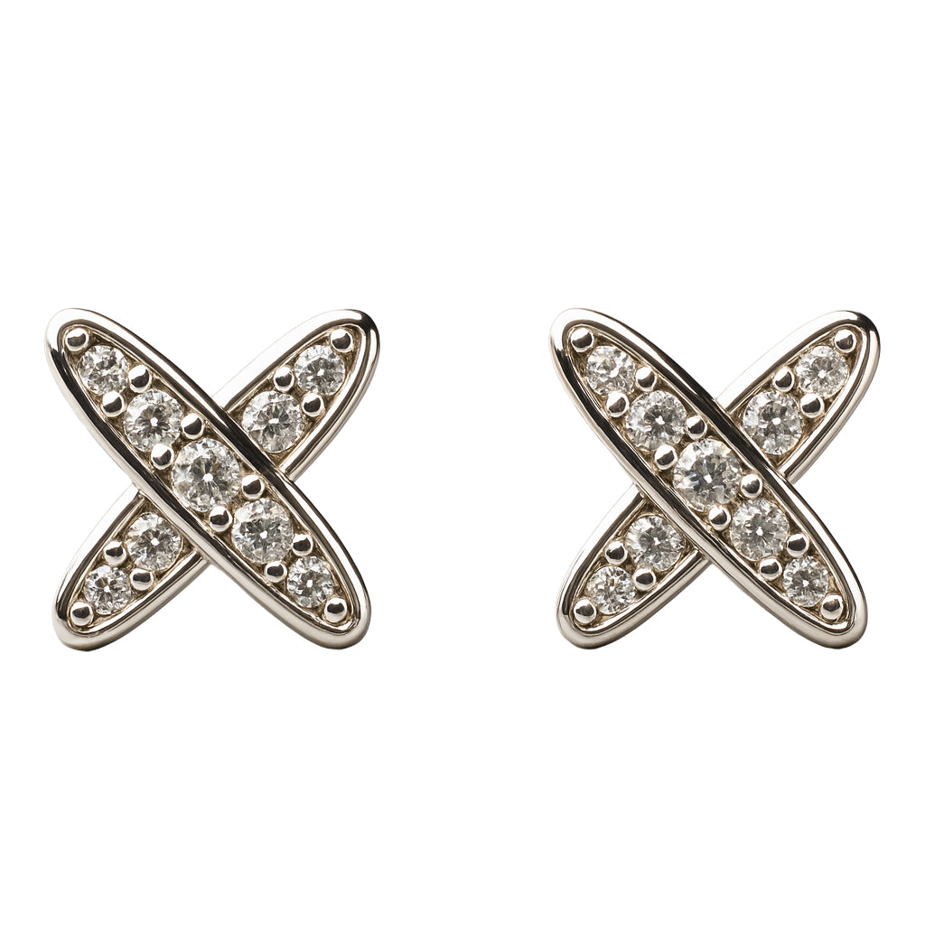 Classic and stylish, these 925 Sterling Silver Cross CZ Stud Earrings feature intersecting lines...