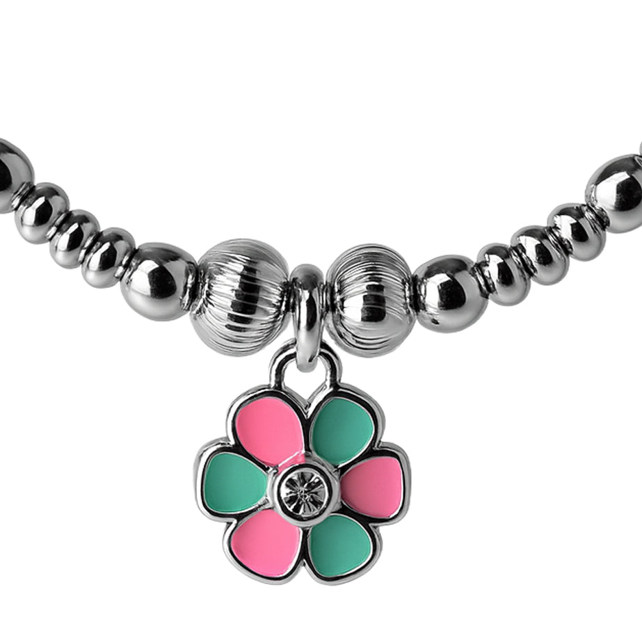 Add a playful yet elegant touch to your jewelry collection with this 925 Sterling Silver Flower Pendant Necklace. The vibrant pink and green enamel petals surround a sparkling cubic zirconia center, creating a chic design that brightens any look. The beaded silver detailing adds sophistication, while the 18-inch length makes it perfect for layering or wearing solo.
