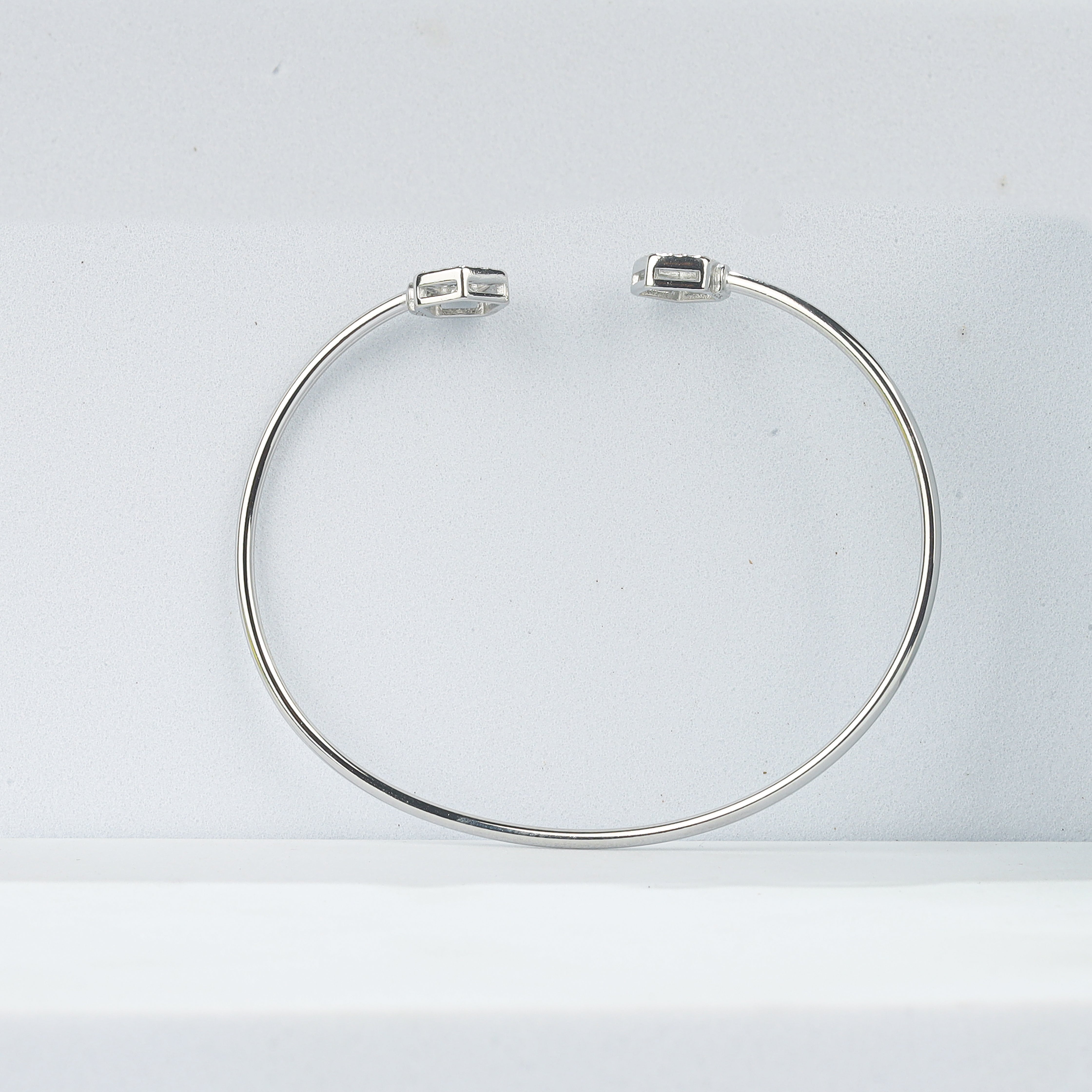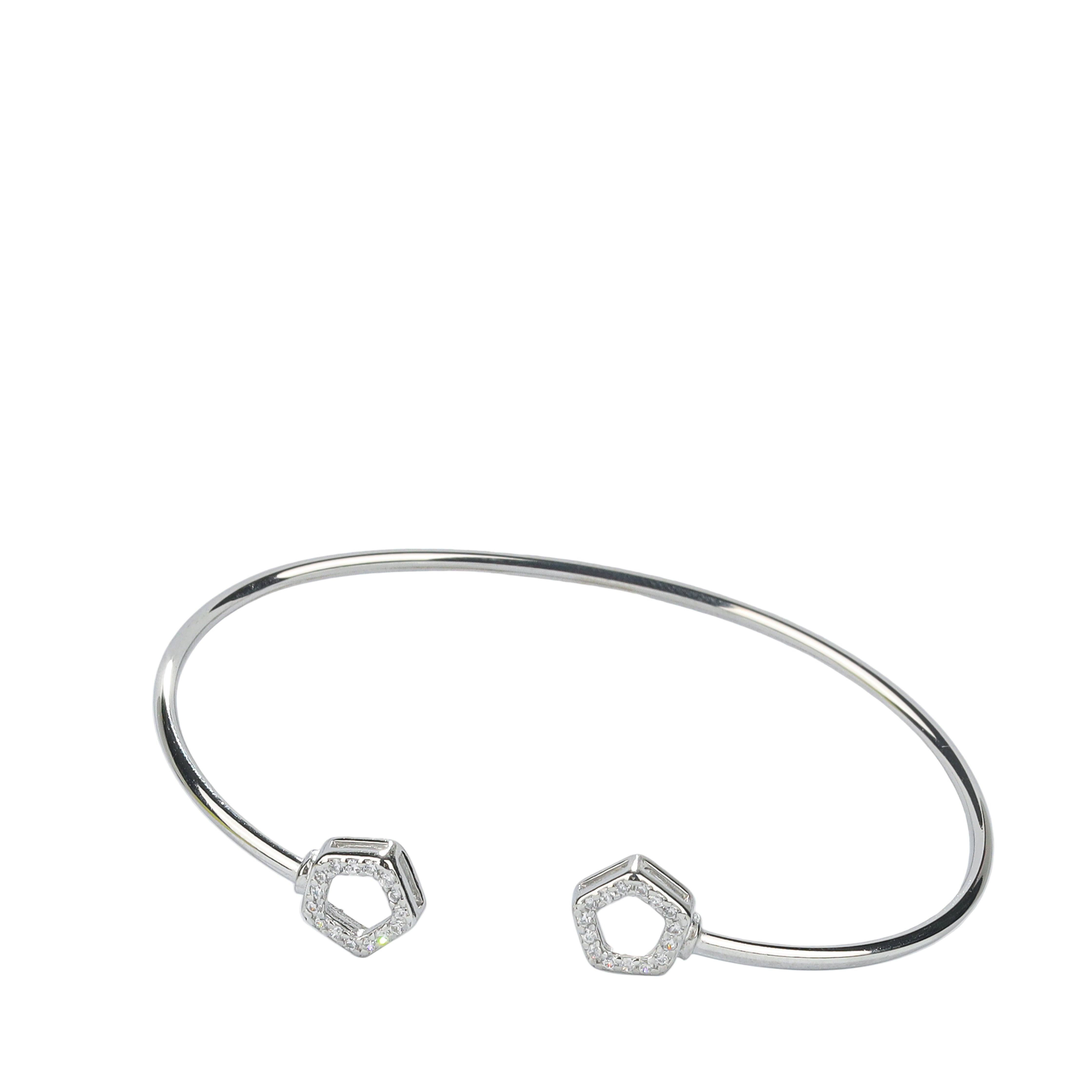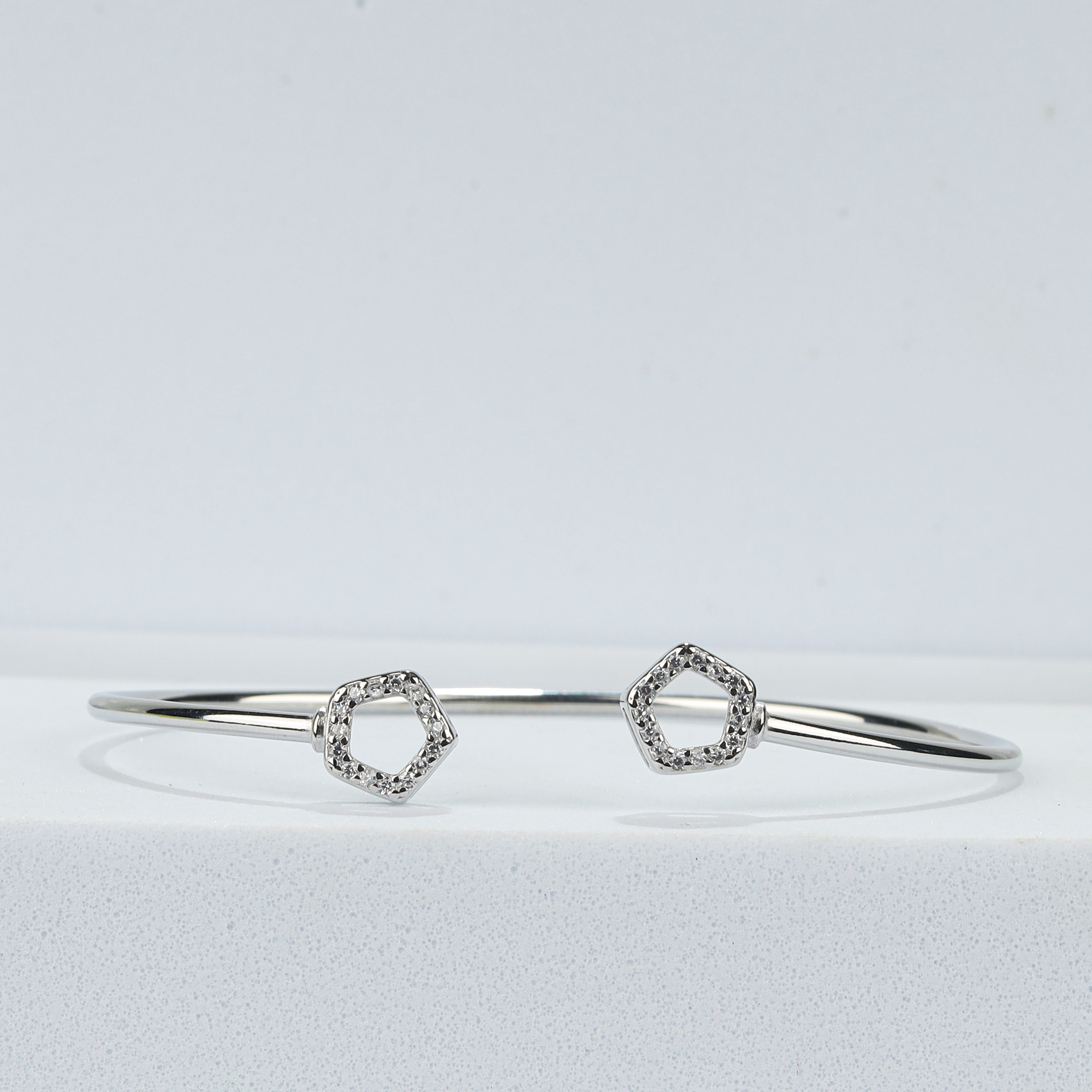 • Design: Open bangle with twin geometric (pentagon) CZ-studded motifs