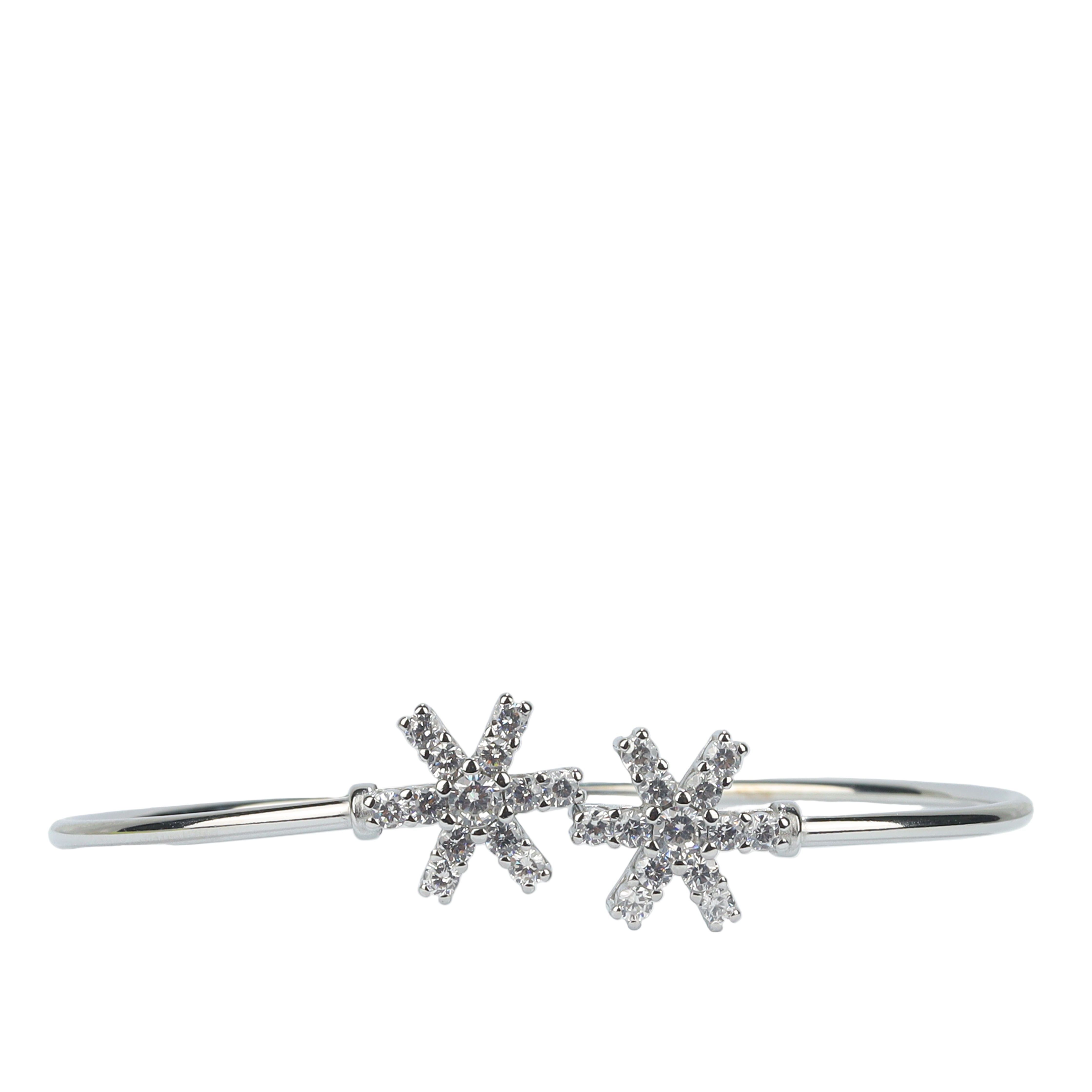 925 Sterling Silver Twin Starburst CZ Open Bangle Bracelet