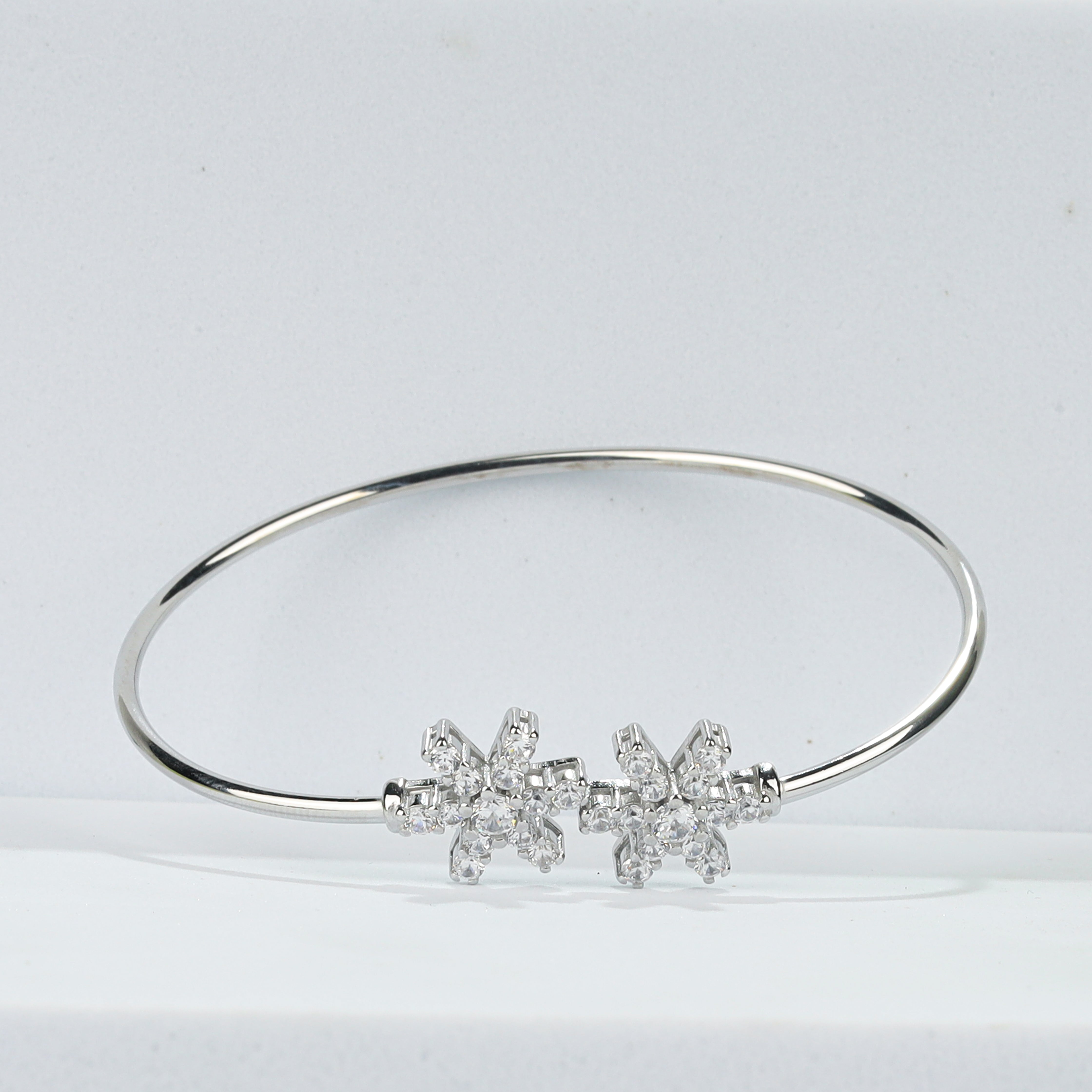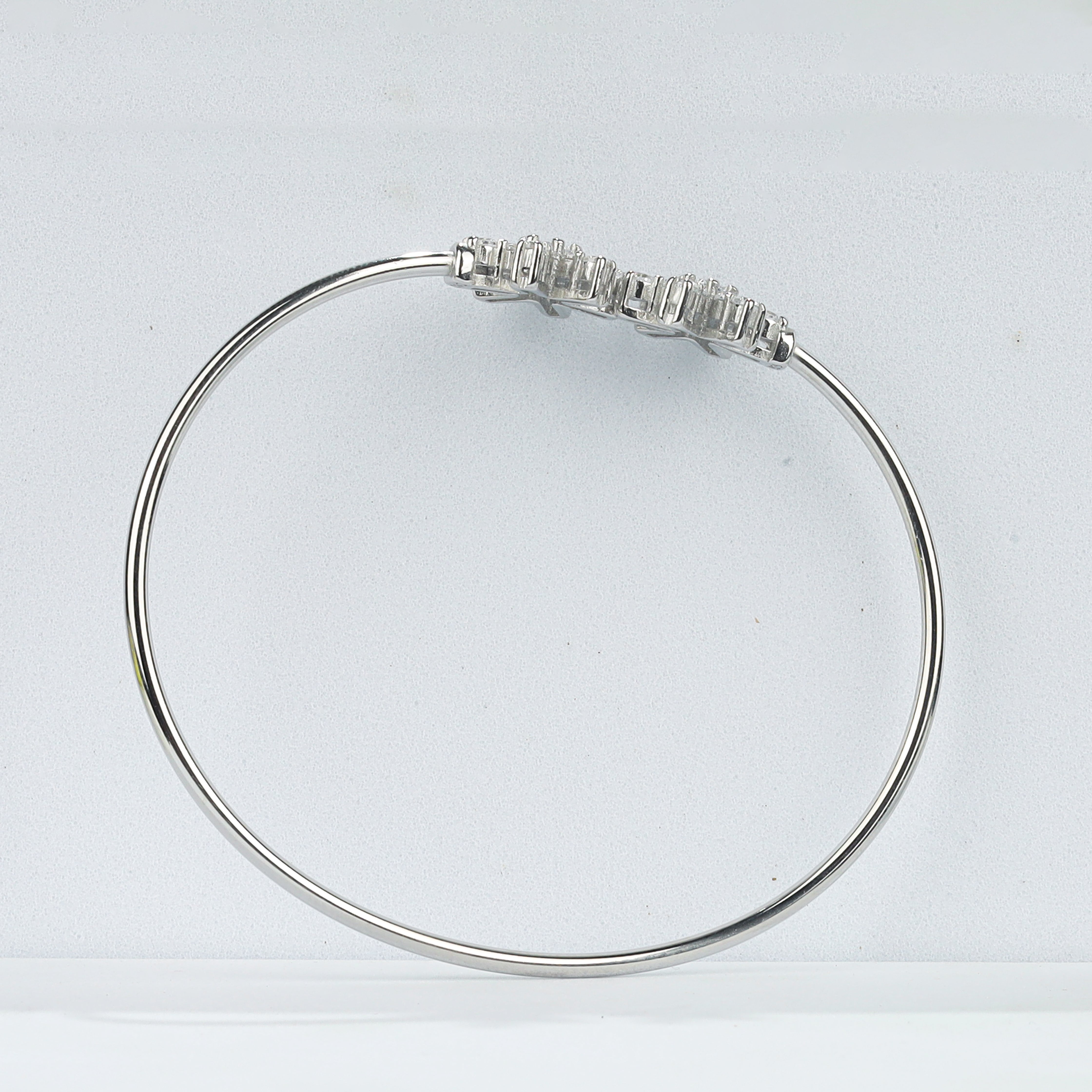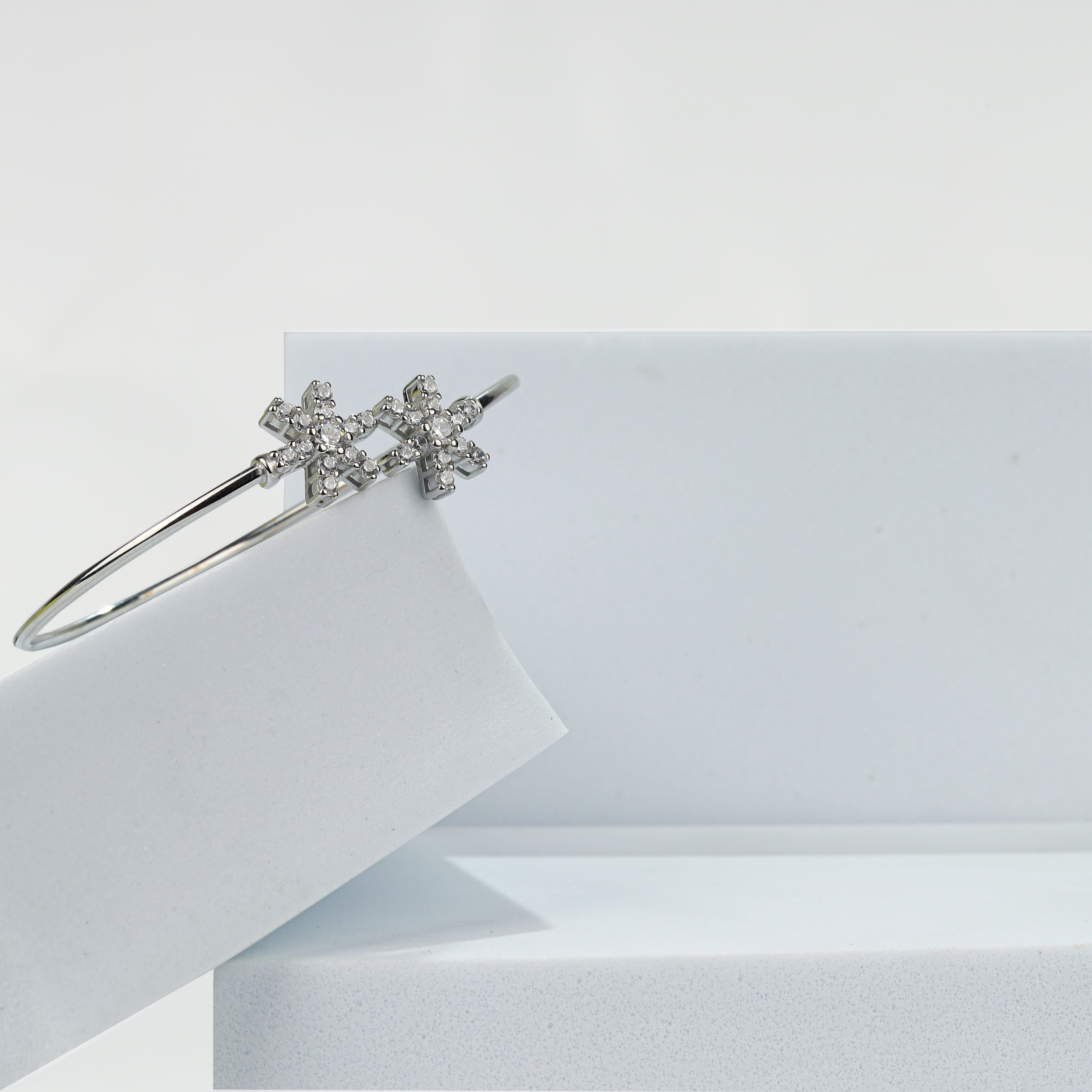 Design: Open bangle with twin starburst motifs fully studded with CZ stones