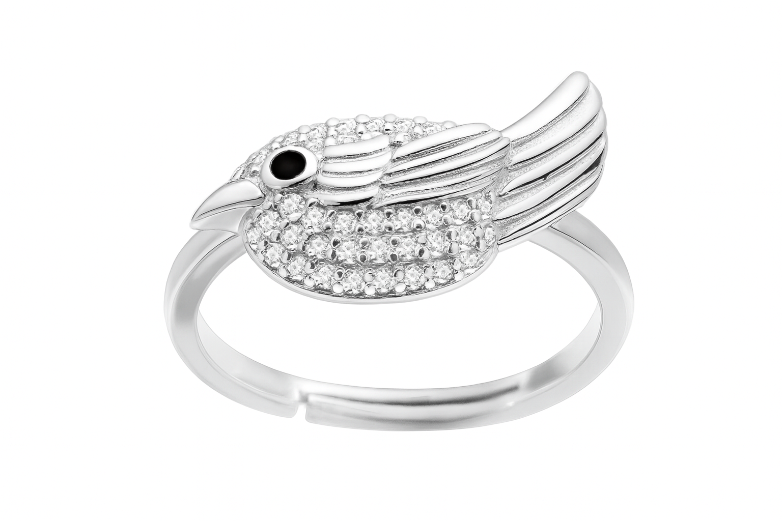 925 Sterling Silver Bird Design Ring for Women – CZ-Studded Adjustable Ring with Black Stone Eye & Wing Detailing
