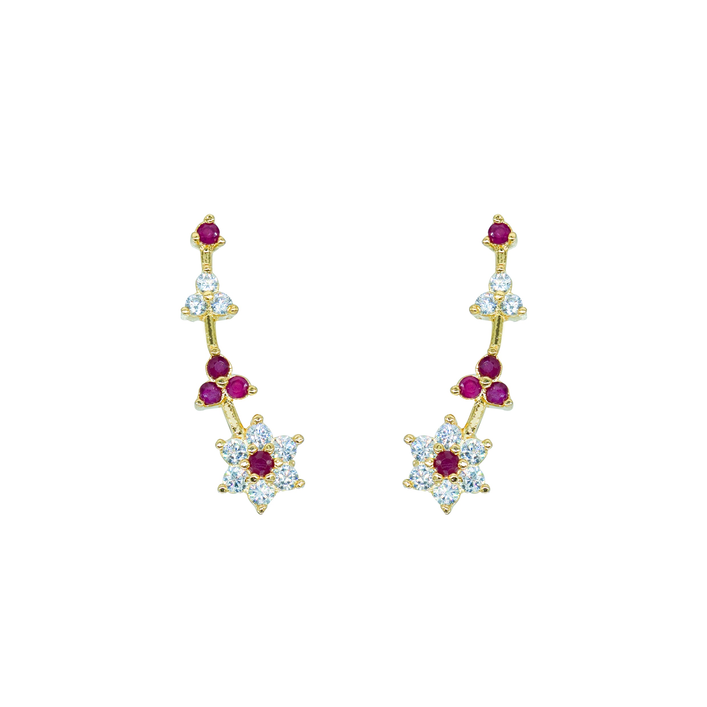 Dazzling CZ ruby and white star cluster ear cuff, crafted in hallmarked 925 sterling silver with luxurious gold plating. A trendy Bluetooth-style earring that adds sparkle and sophistication