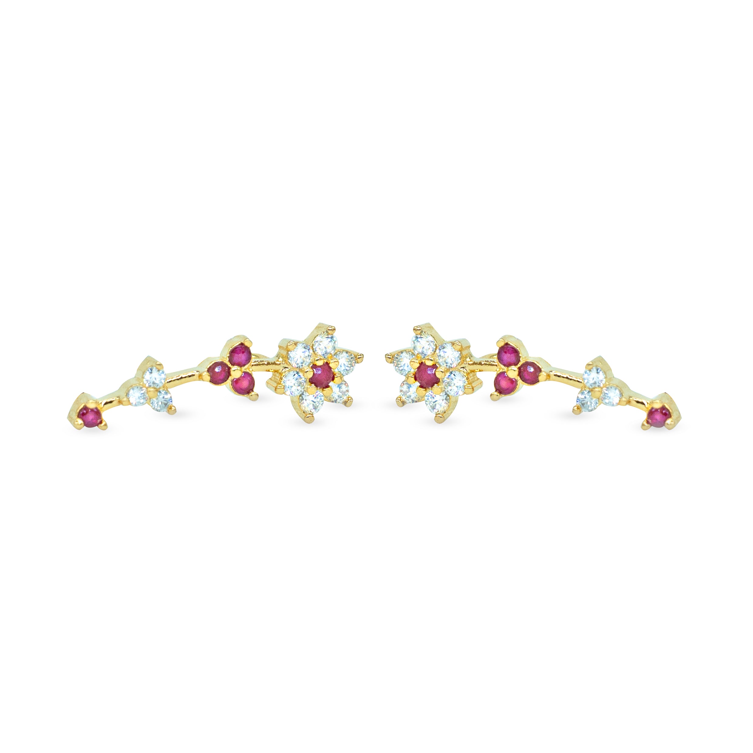 CZ Ruby & White Star Cluster Ear Cuff / Bluetooth Earring – Gold Plated 925 Sterling Silver