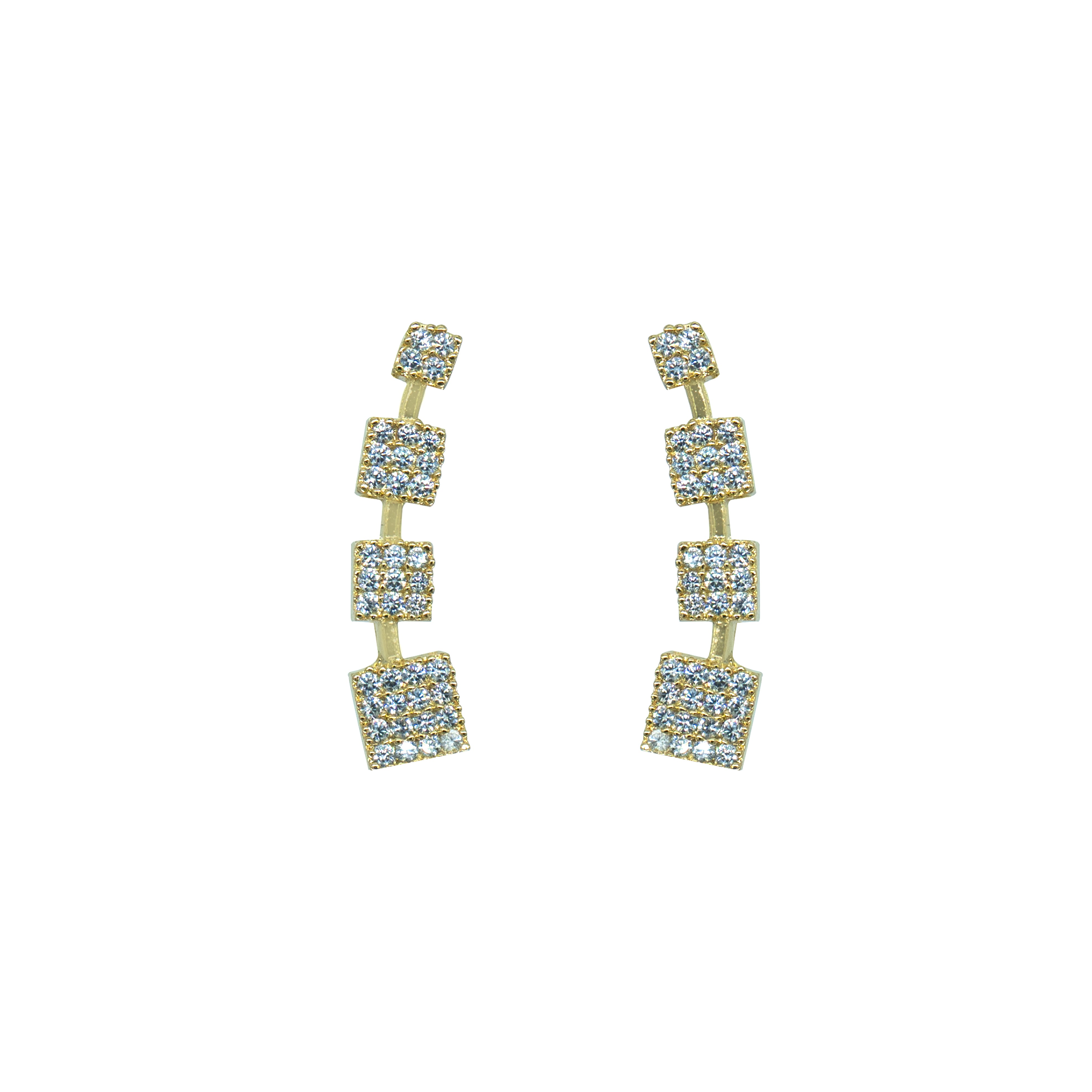 CZ Square Cluster Ear Cuff / Bluetooth Earring – Gold Plated 925 Sterling Silver