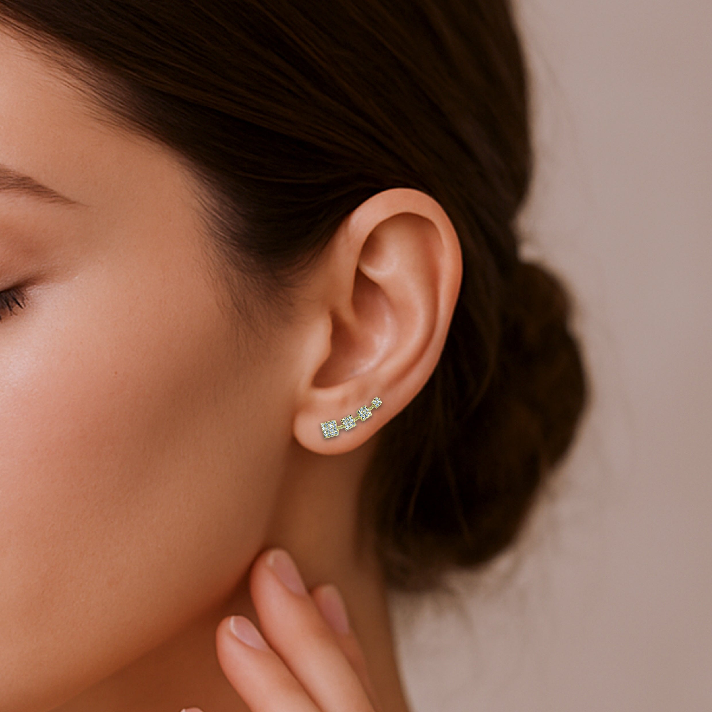 Stylish CZ square cluster Bluetooth earring, crafted in hallmarked 925 sterling silver with premium gold plating. The geometric sparkle adds a chic, modern edge — no piercing required, anti-tarnish finish, perfect for daily elegance.
