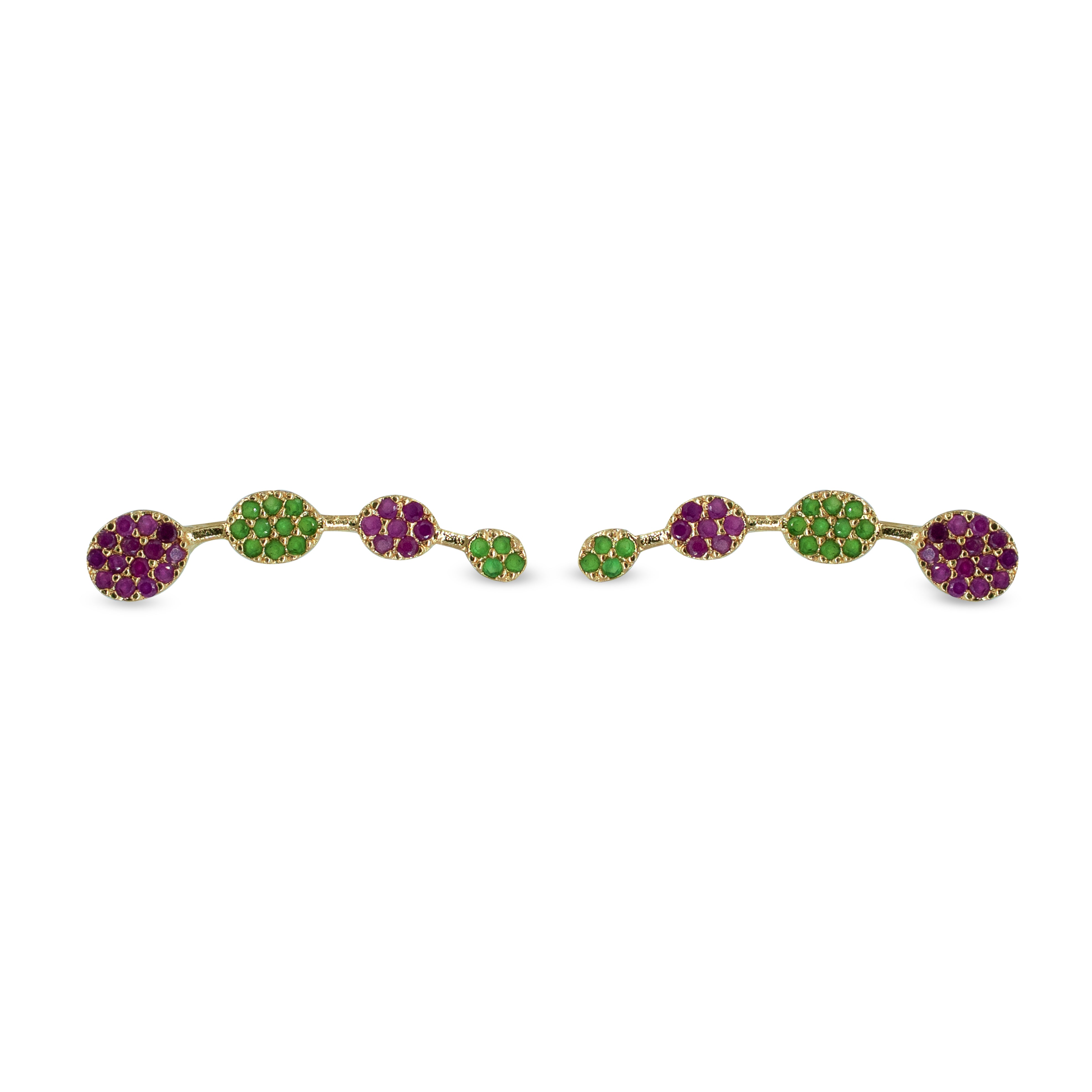 Add a vibrant twist to your style with this Dual Tone CZ Circle Ear Cuff, also known as a Bluetooth earring. Handcrafted in 925 sterling silver with a fine gold-plated finish, this ear cuff features alternating green and ruby-pink CZ stones arranged in a playful circular pattern. The curved silhouette hugs your ear gracefully, giving a perfect blend of sparkle and sophistication.