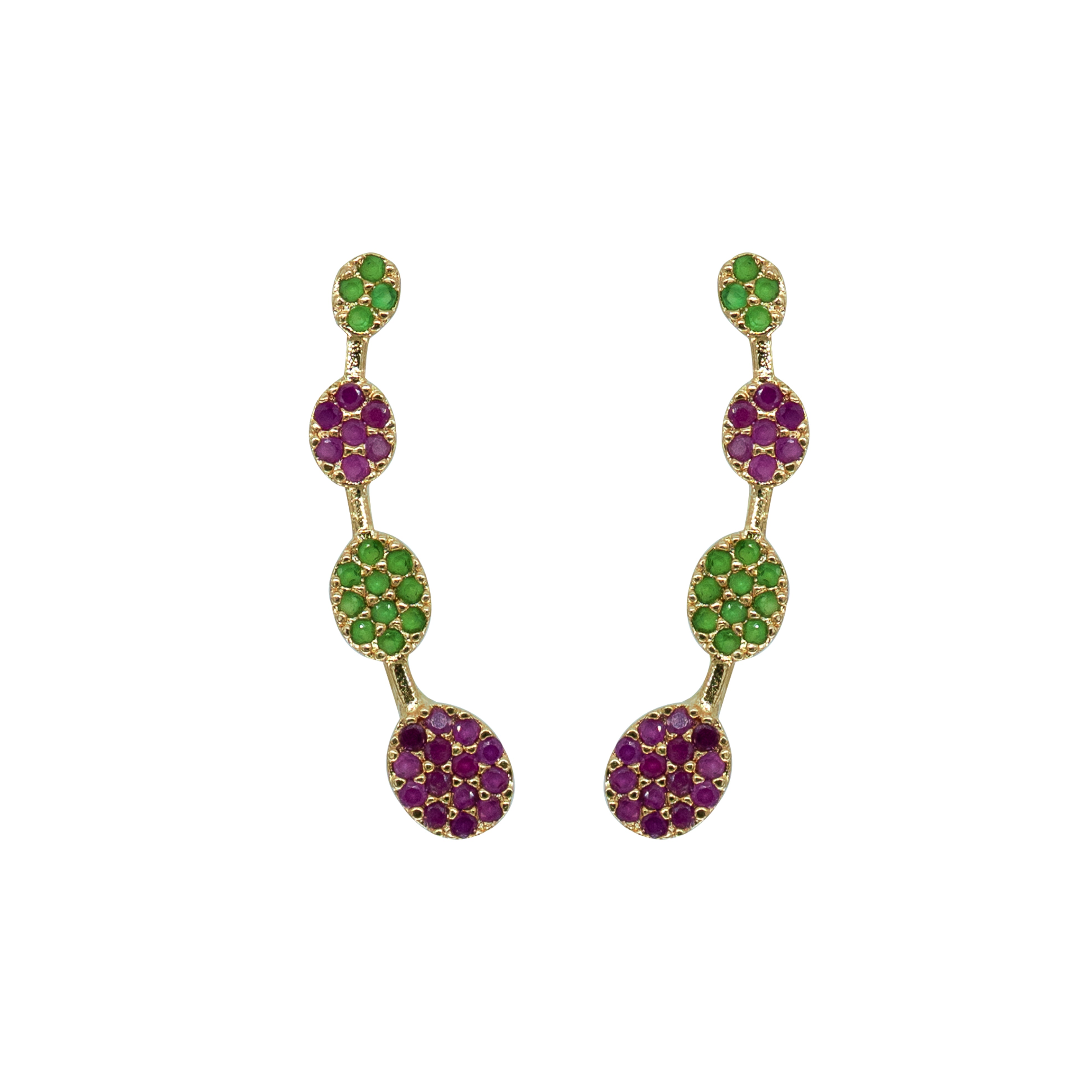 • Stone Type: Dual-tone Cubic Zirconia (Green & Ruby-Pink)