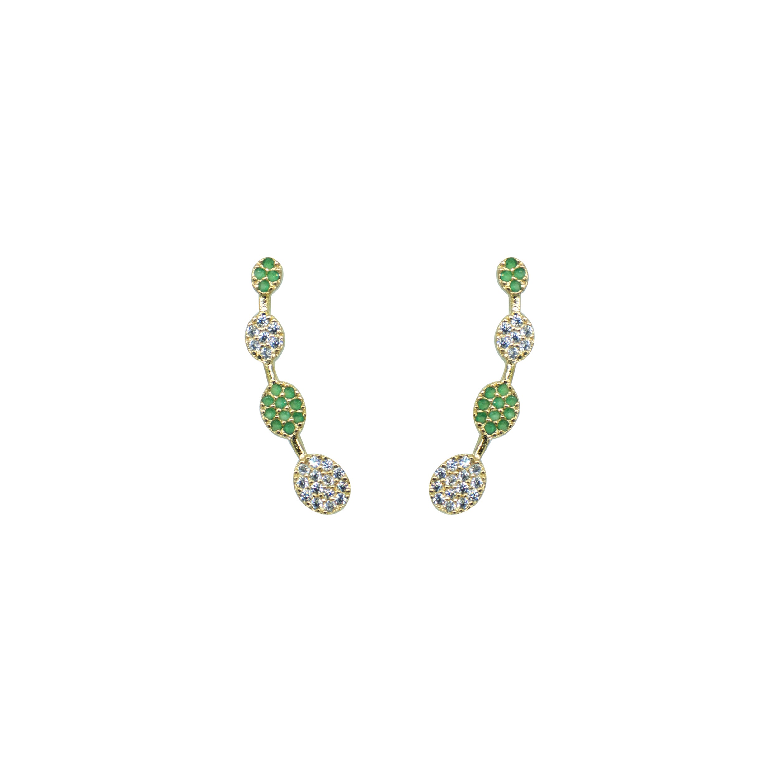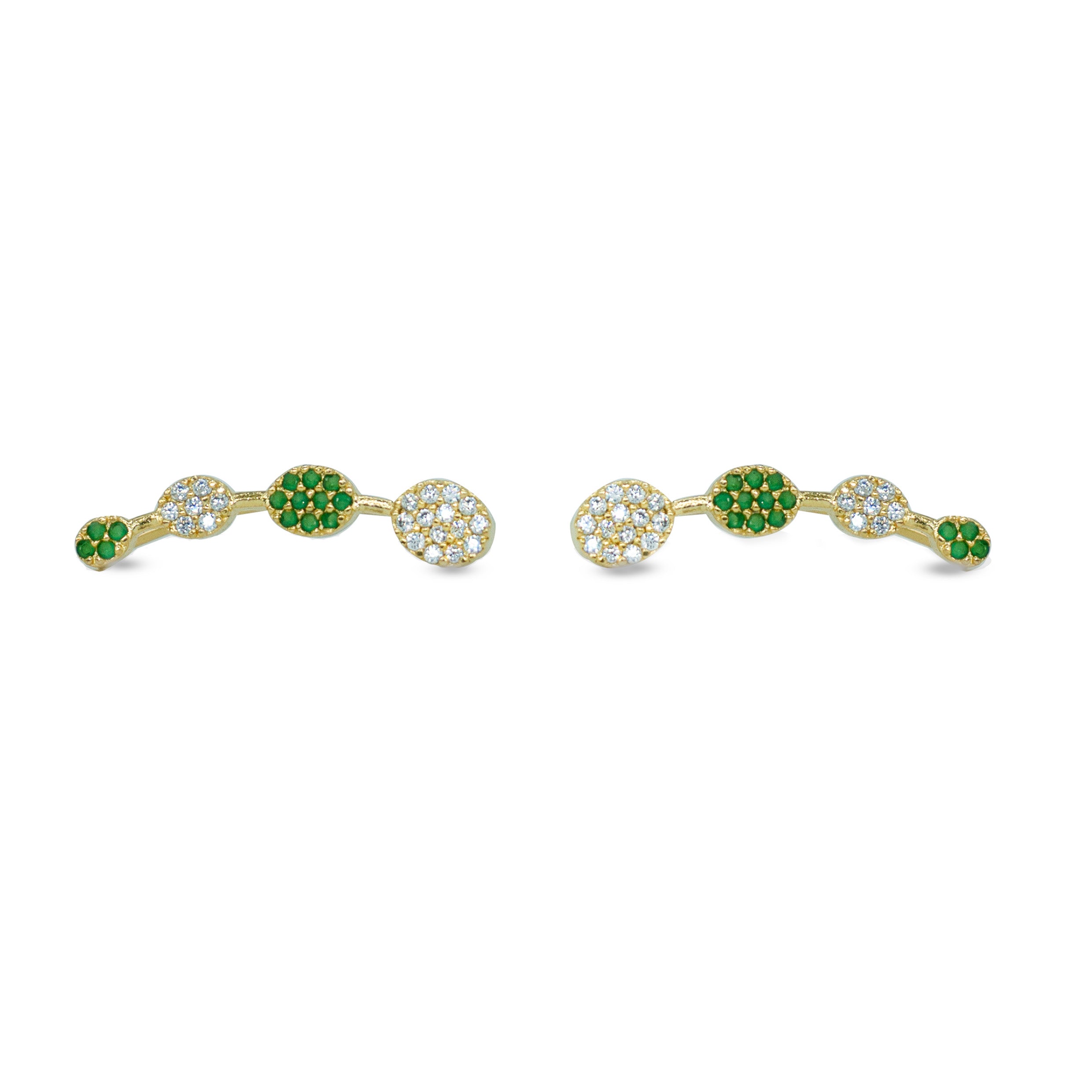 A chic Bluetooth-style ear cuff crafted in hallmarked 925 sterling silver with a rich gold polish. Designed with alternating green and white CZ stones for a balanced, modern sparkle. Lightweight, elegant, and perfect for both everyday and festive wear.
