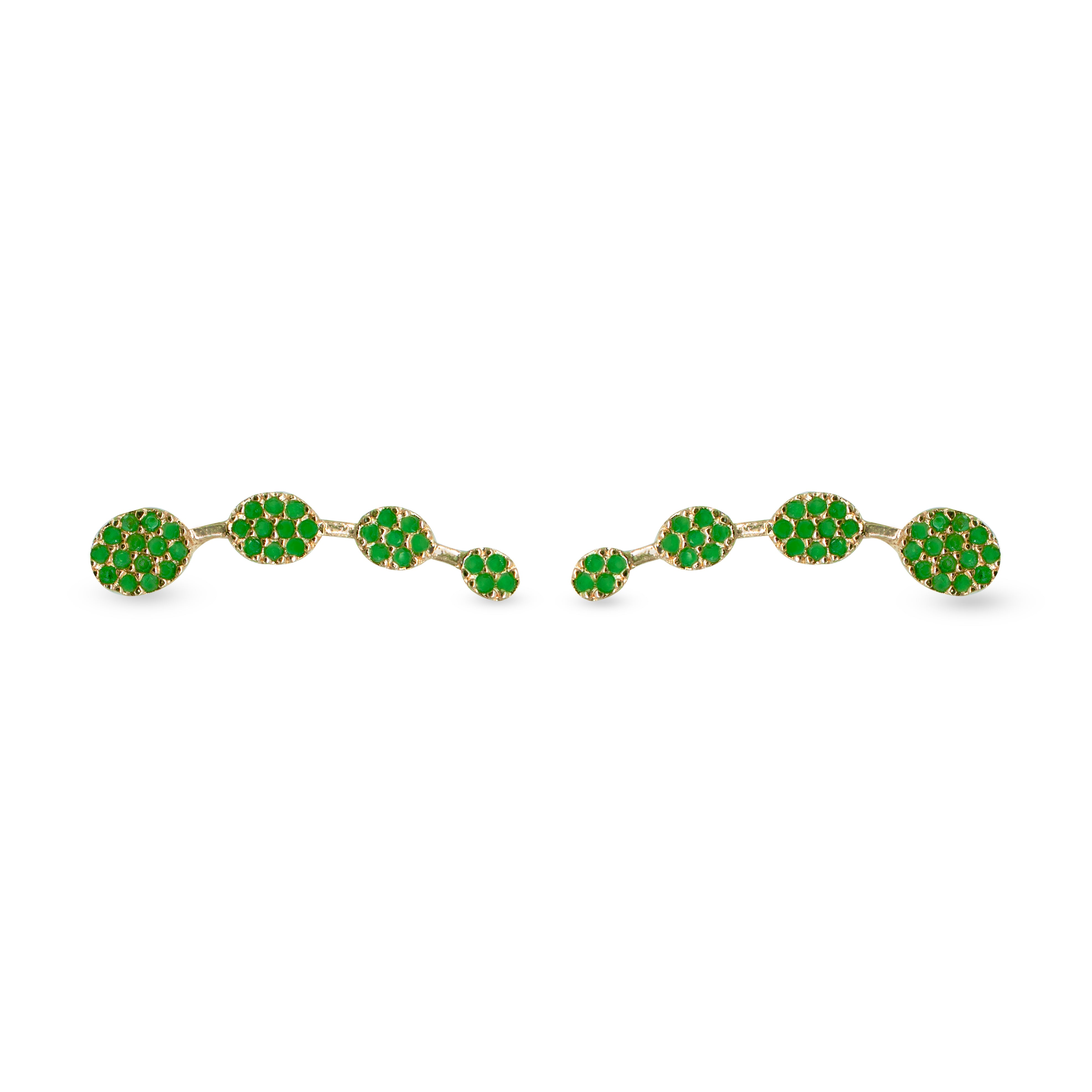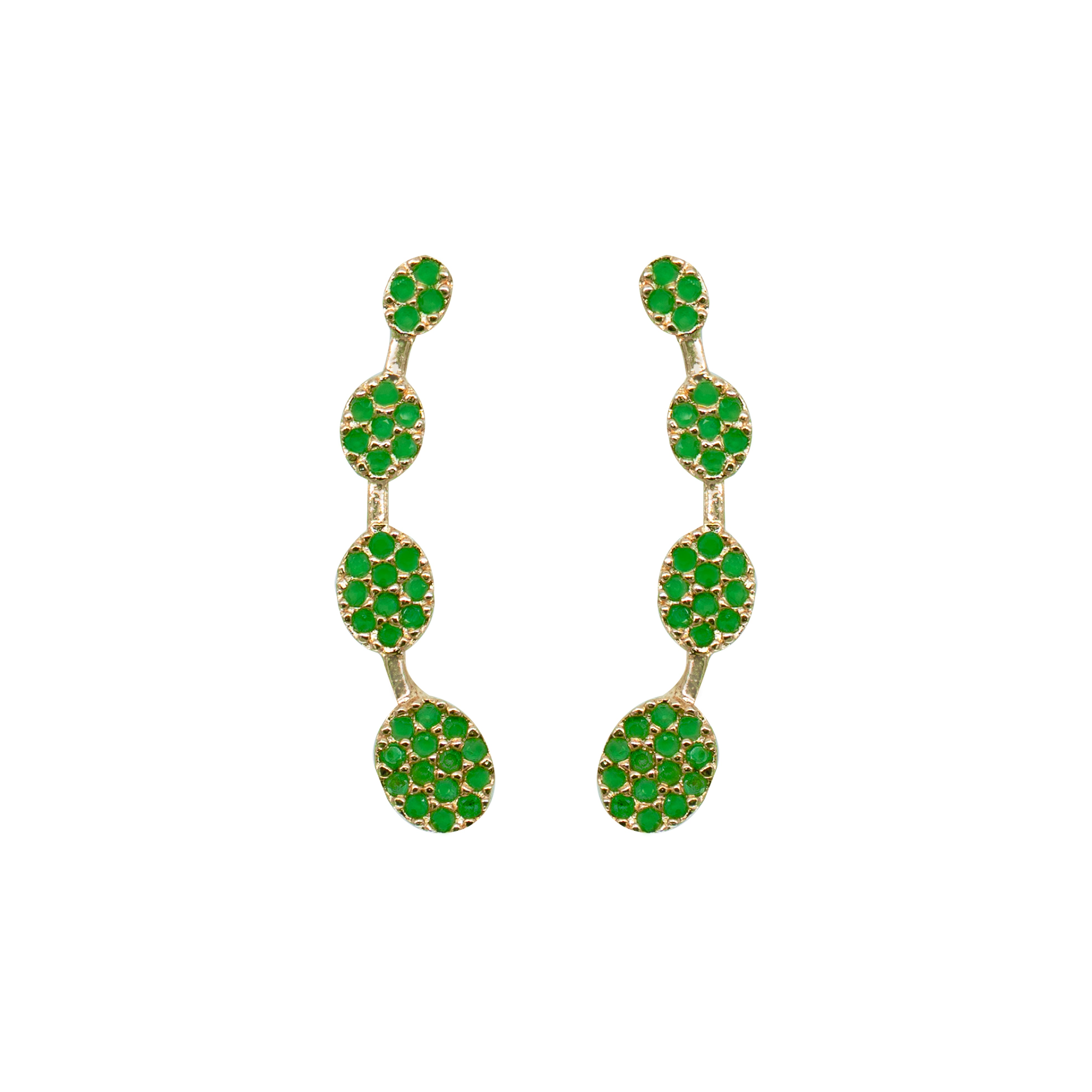 The unique circular design is set with emerald-green cubic zirconia stones, creating a shimmering effect that enhances both traditional and modern looks.