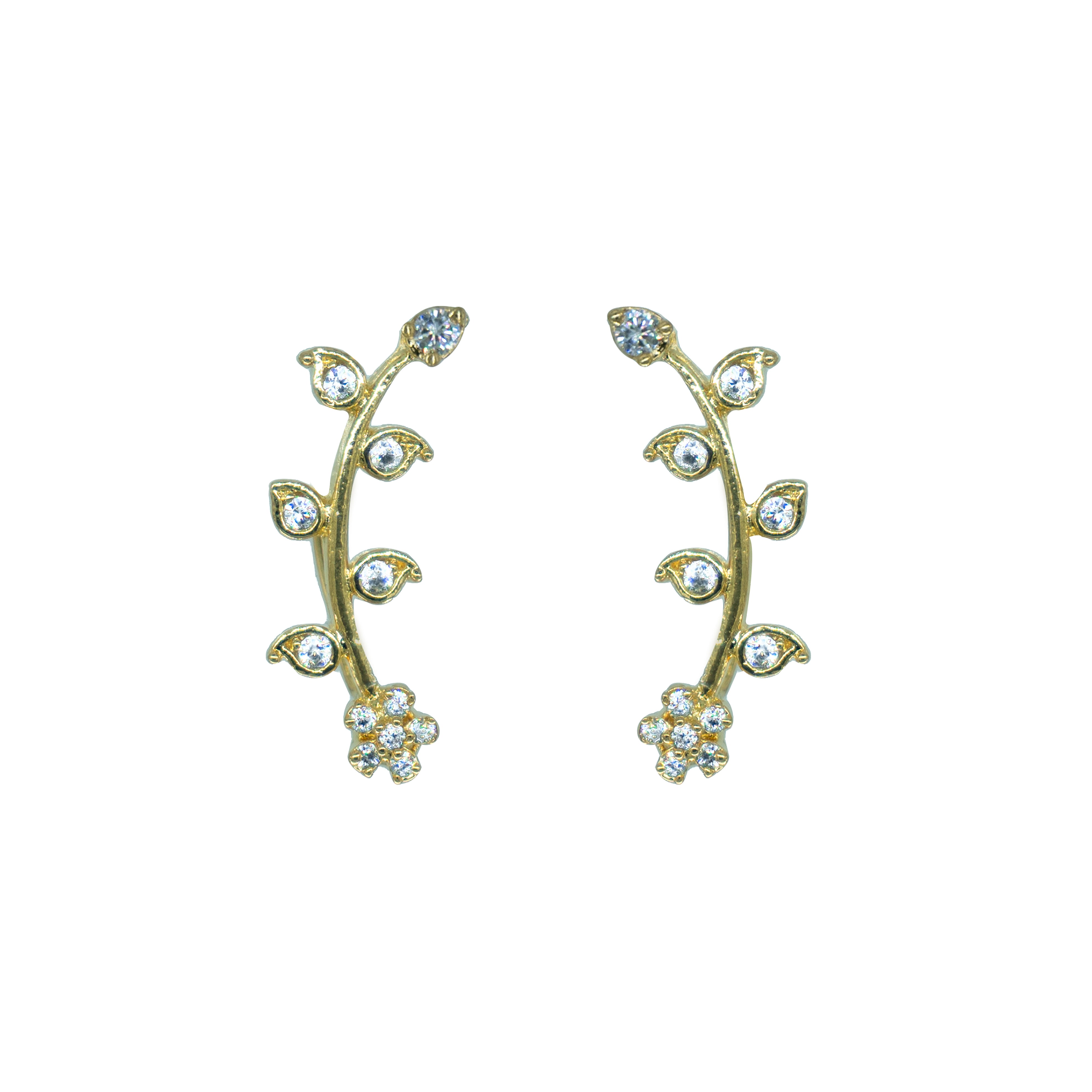 Floral Leaf CZ Ear Cuff / Bluetooth Earring – Gold Plated 925 Sterling Silver