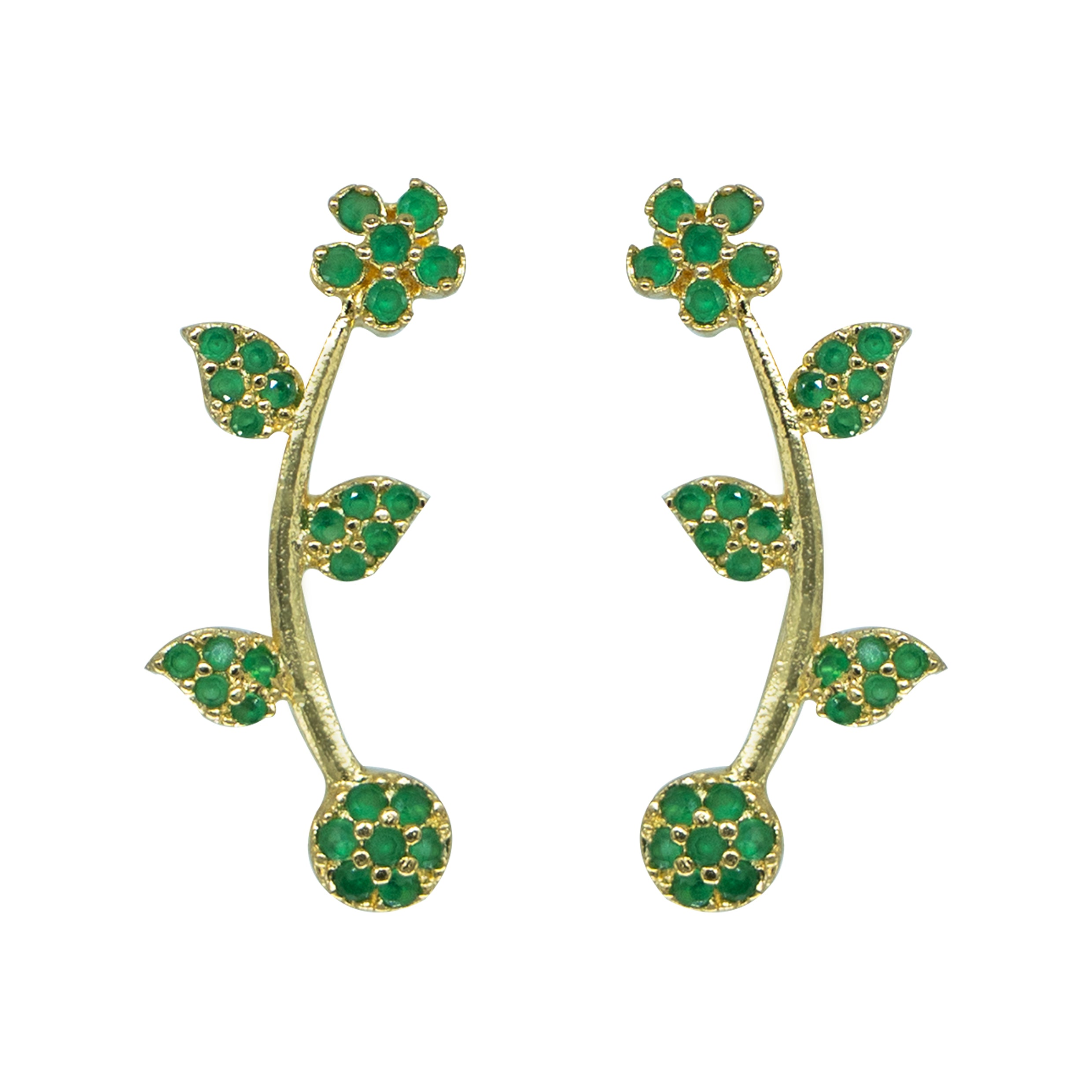 Elegant green floral vine ear cuff, also called a Bluetooth earring, crafted in hallmarked 925 sterling silver with luxurious gold plating. Anti-tarnish, no piercing required, and perfect for everyday or festive sparkle