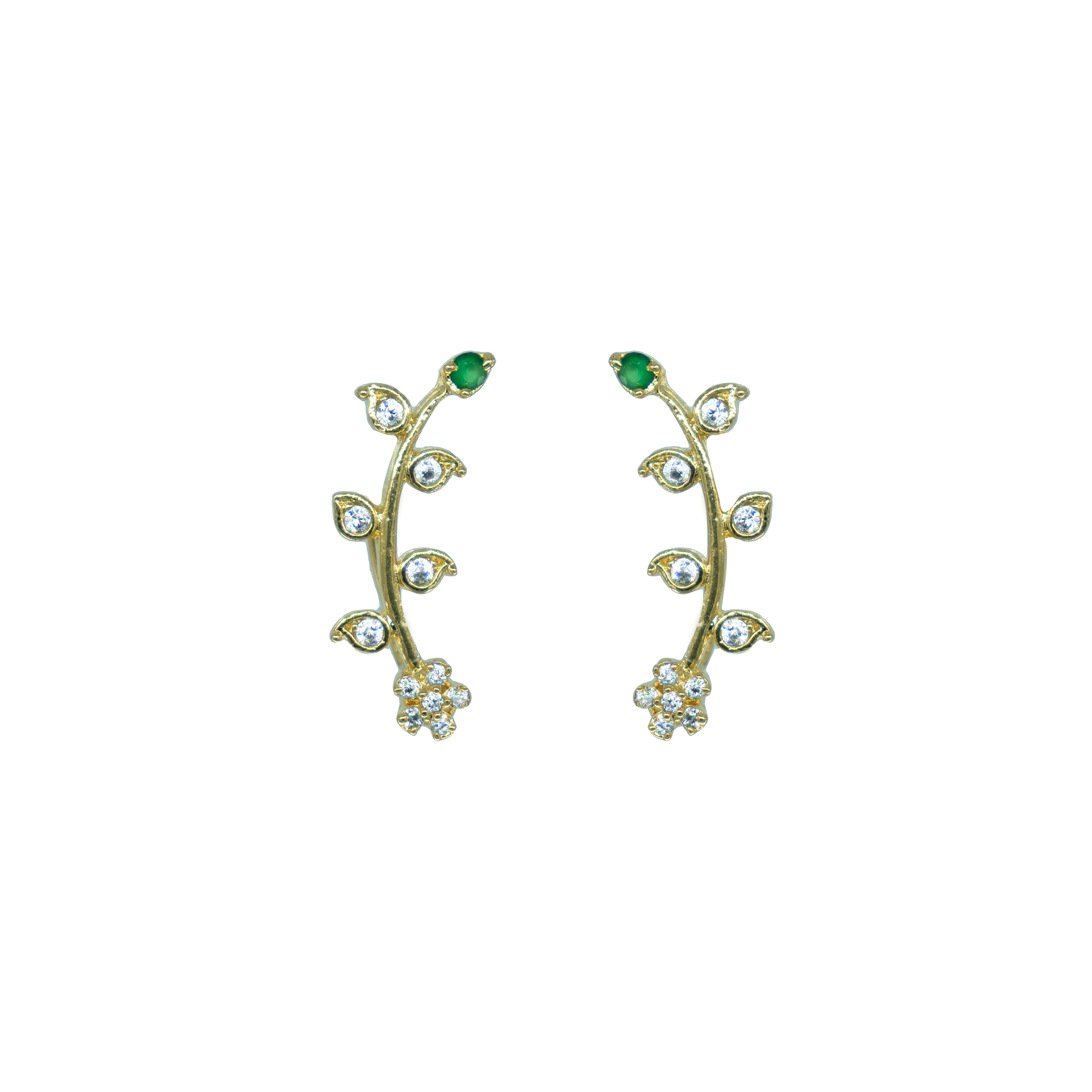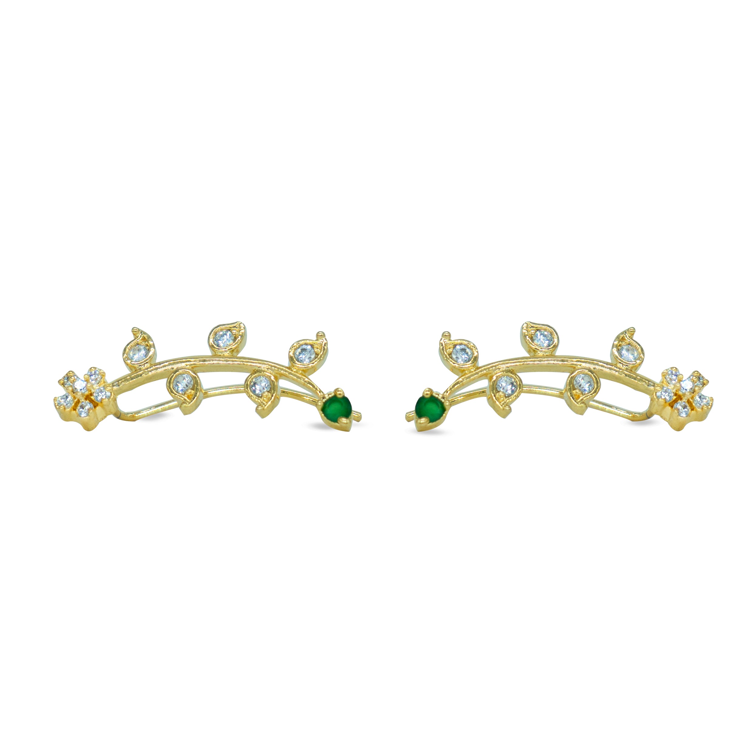 Graceful vine-style Bluetooth earring crafted in gold plated 925 sterling silver with green and white CZ stones. A no-piercing design that brings nature-inspired elegance and modern charm to your everyday sparkle.