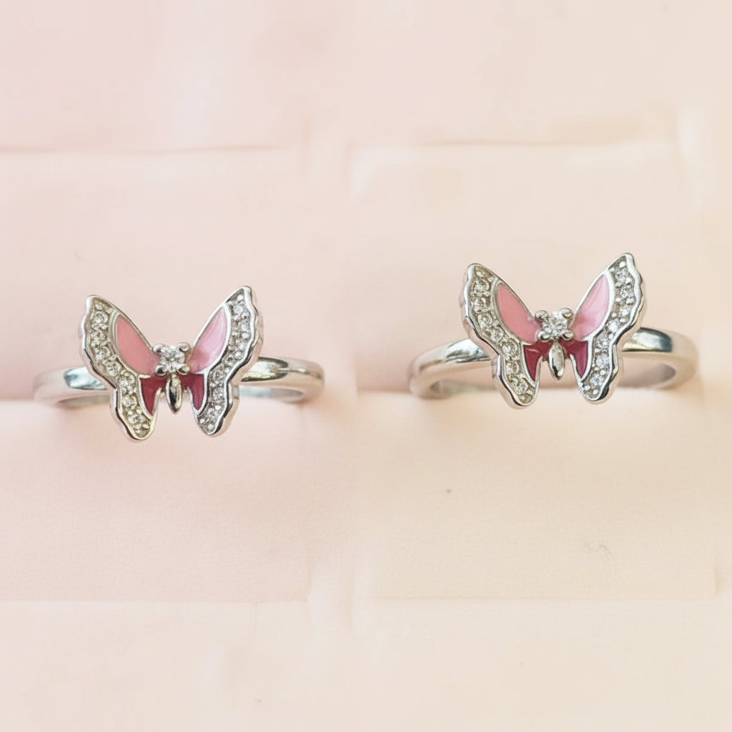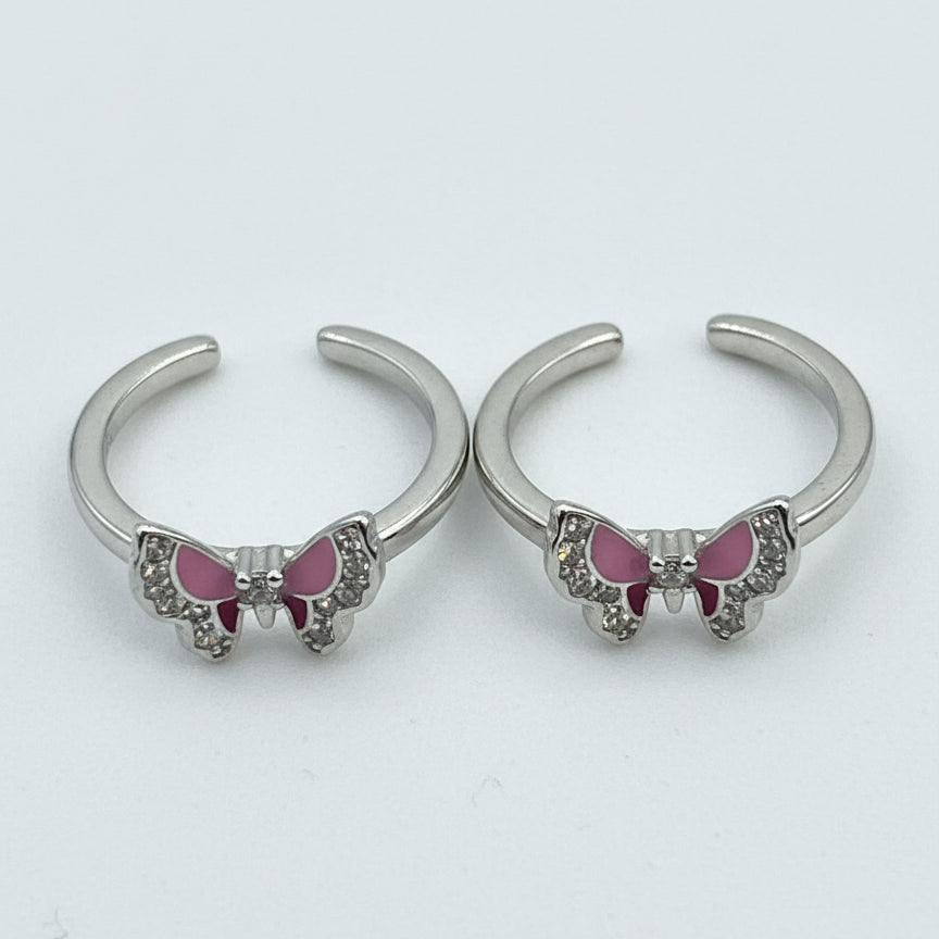 925 Sterling Silver Pink Butterfly Adjustable Toe Ring | Enamel CZ Silver Bichiya for Women