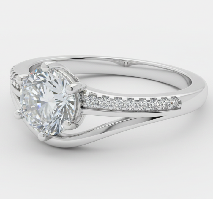 Design: Split-shank band with a classic prong-set solitaire centerpiece